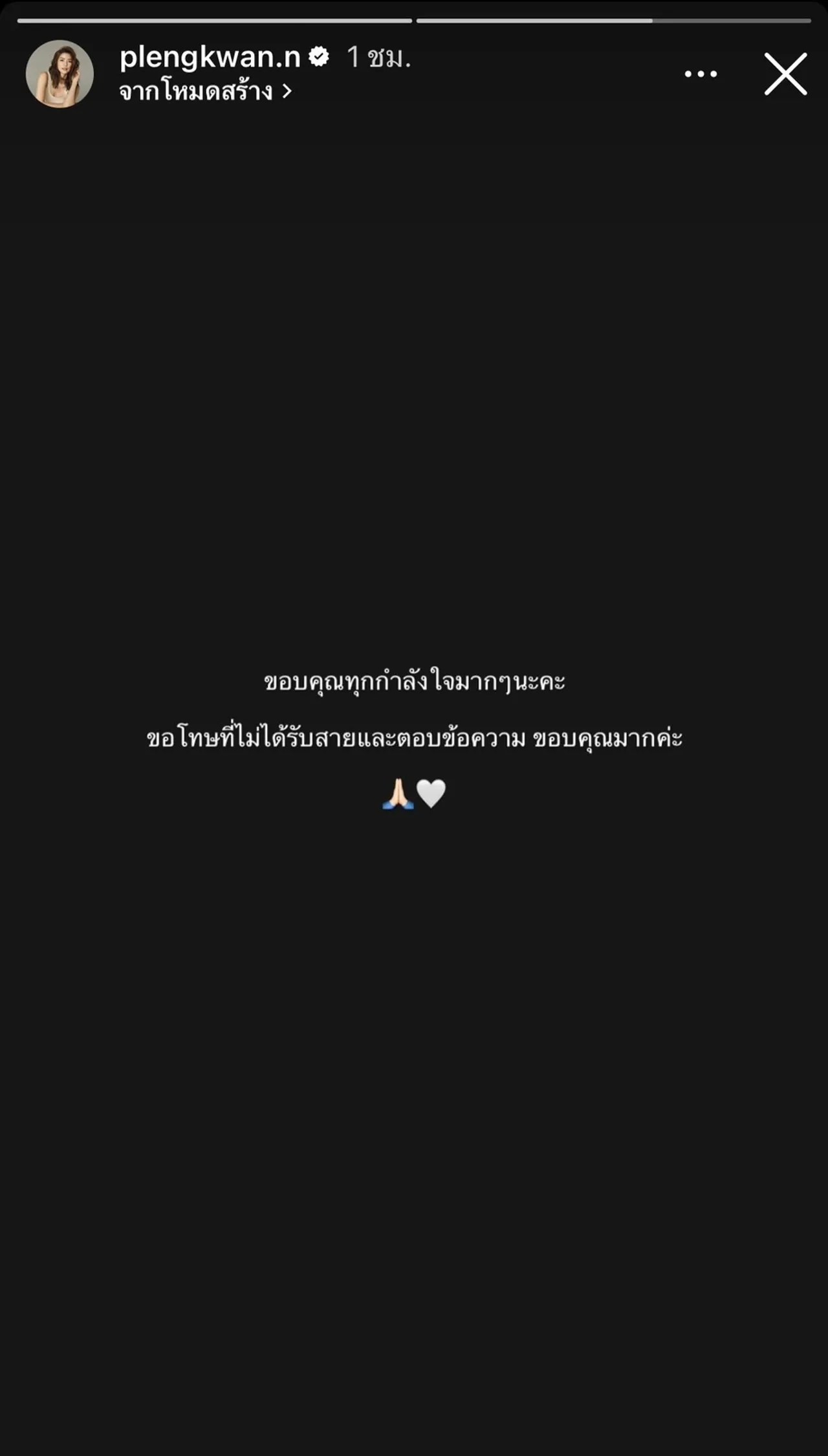 ซึ่งเจ้าตัวได้โพสต์ข้อความเอาไว้อีกว่า “ขอบคุณทุกกำลังใจมากๆ นะคะ ขอโทษที่ไม่ได้รับสายและตอบข้อความ ขอบคุณมากค่ะ”