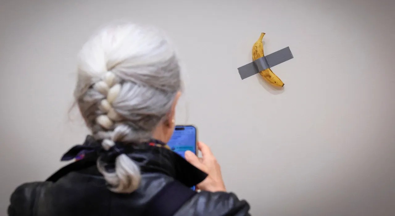 ผลงานศิลปะ “Comedian” หรือที่รู้จักกันในชื่อ กล้วยติดเทปกาว งานศิลปะสุดแหวกแห่งปี ถูกประมูลไปในราคาสูงถึง 6.2 ล้านดอลลาร์สหรัฐ หรือกว่า 201 ล้านบาท ในการประมูลที่นครนิวยอร์กเมื่อวันพุธที่ผ่านมา