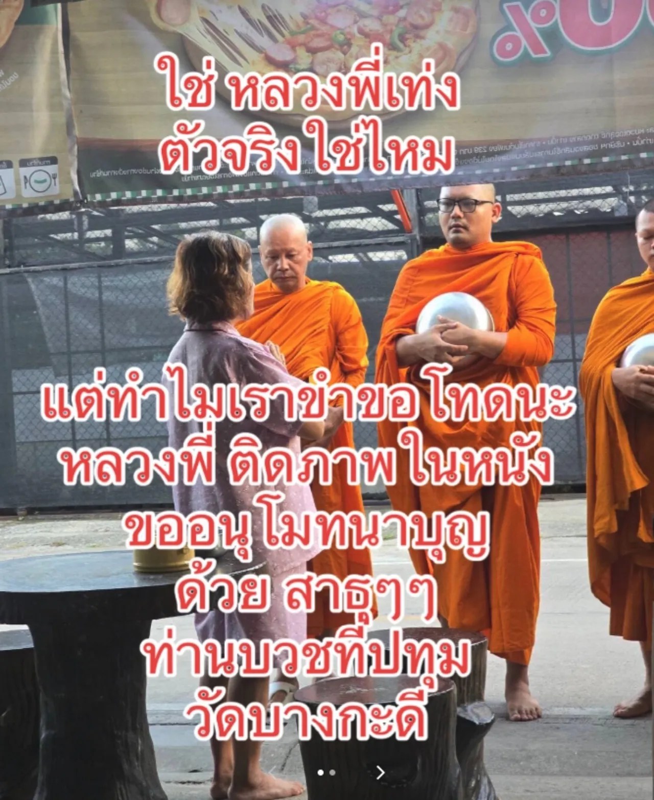 ทำเอาหลายคนต่างฮือฮาและพูดถึงในโลกออนไลน์ เมื่อมีผู้ใช้ TikTok ชื่อ @herepuy และ @bigbinbkd ได้โพสต์คลิปที่เป็นภาพของนักแสดงตลกชื่อดัง เท่ง เถิดเทิง ที่ห่มผ้าเหลือง กำลังเดินบิณฑบาตกับพระรูปอื่นๆ พร้อมเขียนข้อความว่า