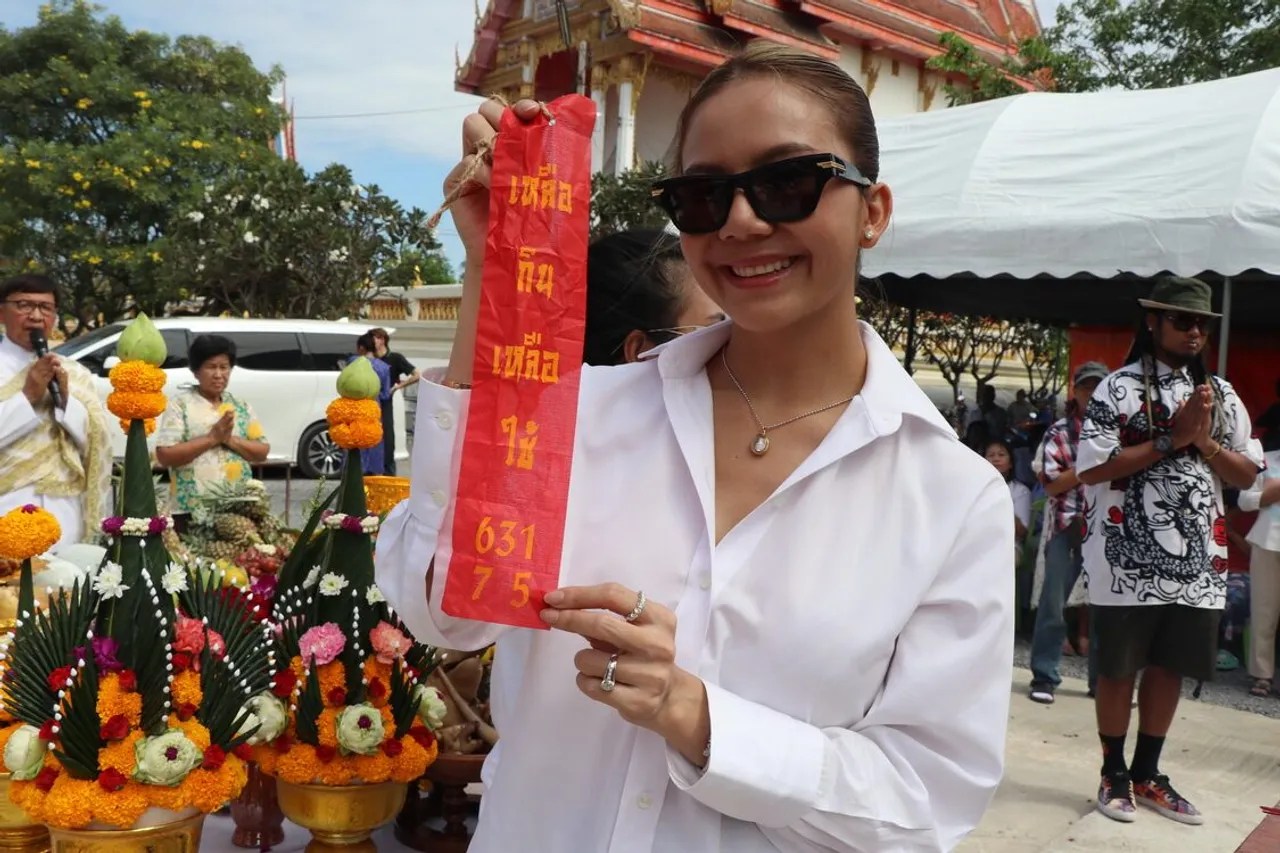 จ๊ะ นงผณี ร่วมพิธีเบิกเนตรท้าวเวสสุวรรณ คอหวยตาลุกวาวมีโชว์เลขหางประทัด