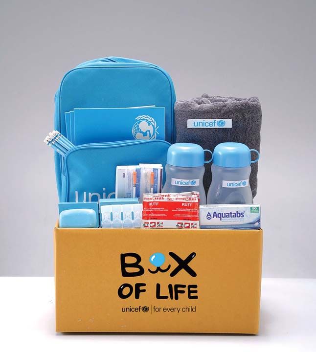 “Box of Life” หรือ “กล่องช่วยชีวิต” ของยูนิเซฟ เป็นชุดสิ่งของจำเป็นขั้นพื้นฐาน ที่ออกแบบมาเพื่อช่วยเหลือเด็กๆ ที่อยู่ในสถานการณ์ฉุกเฉิน ประกอบด้วย เช่น วัคซีนป้องกันโรค อาหารบำบัดฉุกเฉินเม็ดทำน้ำดื่มสะอาด ชุดสุขอนามัย และอุปกรณ์การศึกษา ซึ่งไม่เพียงช่วยให้เด็กๆ ปลอดภัย แต่ยังสร้างพื้นฐานที่ดีแก่การเติบโตและพัฒนาได้อย่างเต็มศักยภาพ แม้ในยามที่ต้องเผชิญความยากลำบาก การสนับสนุน Box of Life จึงเป็นเหมือนการวางรากฐานอนาคตที่มั่นคงให้แก่เด็กทุกคน เพื่อให้พวกเขามีโอกาสเติบโตอย่างปลอดภัย แข็งแรง และเปี่ยมด้วยความหวัง