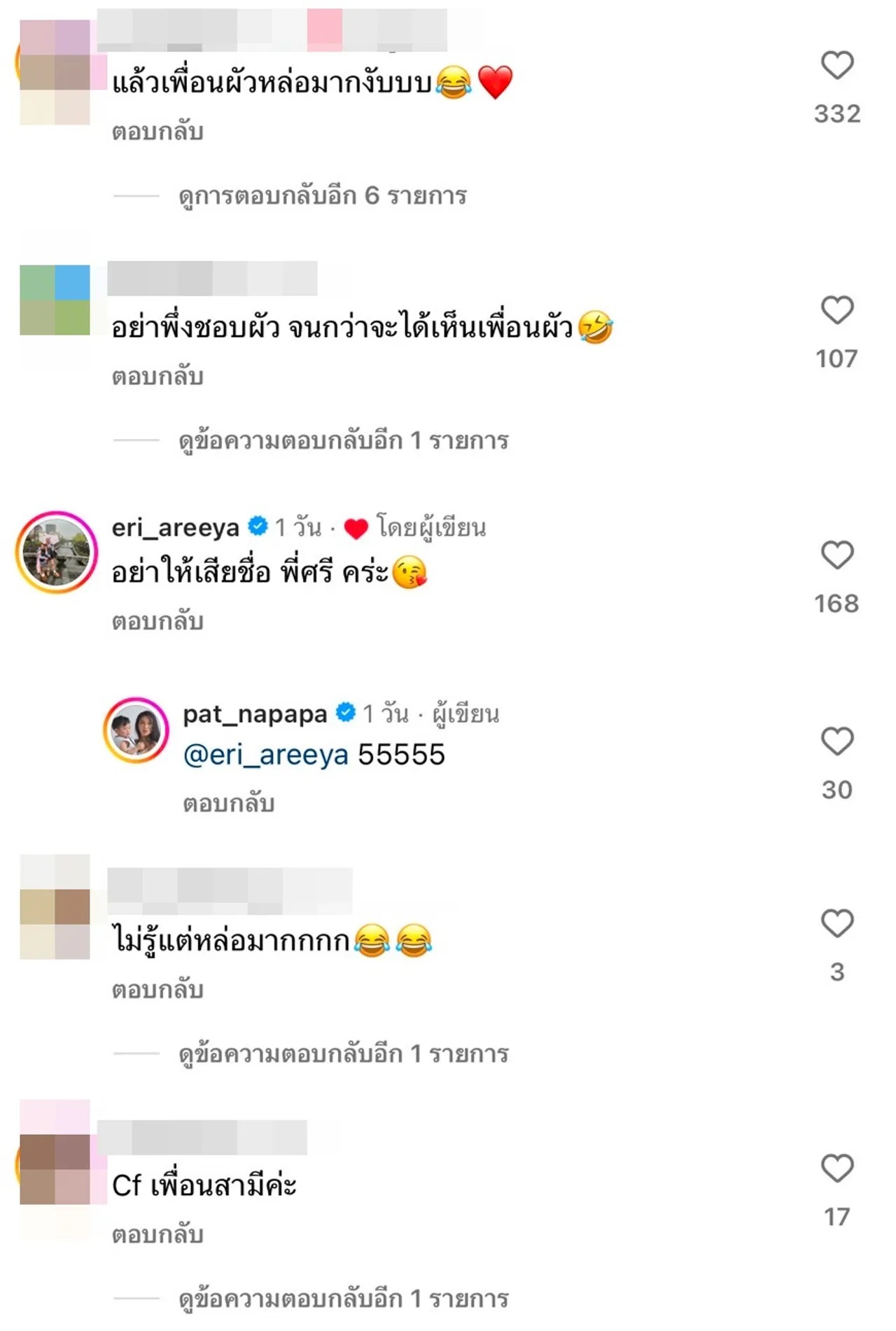 อีกทั้งยังมีแฟนๆ ที่เข้ามาแซวความหล่อของหนุ่มชาวต่างชาติ อาทิ อย่าให้เสียชื่อพี่ศรีค่ะ, อย่าพึ่งชอบผัว จนกว่าจะได้เห็นเพื่อนผัว, แล้วเพื่อนผัวหล่อมากงับบบ, เพื่อนคุณพีก็จึ้งเกินพี่ศรี, เค้าคุยอะไร ไม่อยากรู้เท่าเค้าเป็นใครแม่!!!!!, แม๊!!!!!!! เพื่อนผัวหล่อมากกกกกก โอ๊ยยยยย อยากลงคอร์สภาษาอังกฤษทันที ฯลฯ