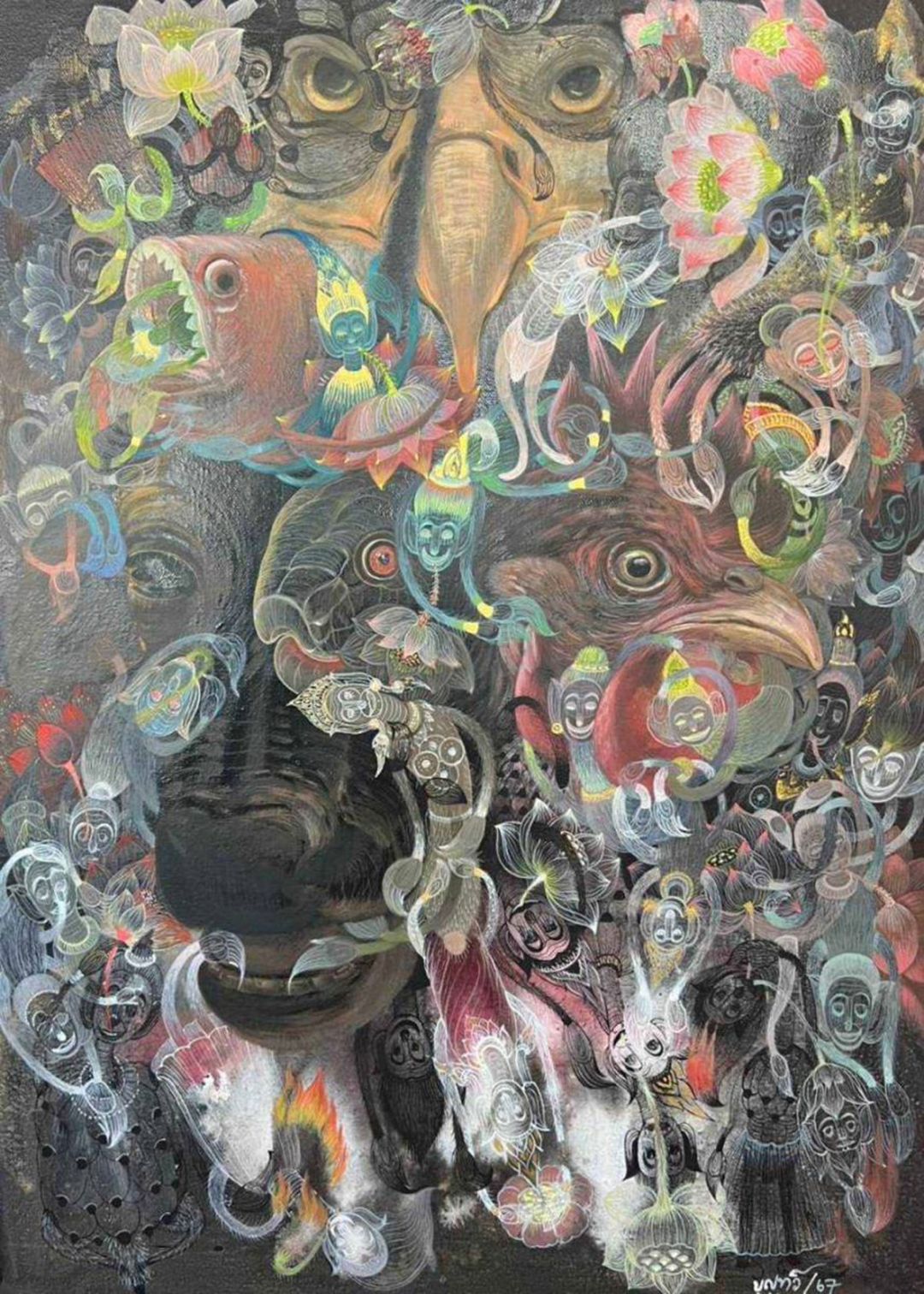 ส่วนหนึ่งของนิทรรศการ 3 อัตลักษณ์ โดย 3 ศิลปิน เจ้าของเหรียญทองจิตรกรรมบัวหลวง ประกอบด้วย อภิสิทธิ์ เอ้งฉ้วน ได้รับรางวัลที่ 1 เหรียญทองบัวหลวง ครั้งที่ 41 และครั้งที่ 43 ในปี 2562 และ ปี 2565 จากประเภทจิตรกรรมไทยแบบประเพณี, บุญทวี ทับทิมไทย รับรางวัลที่ 1 เหรียญทองบัวหลวง ครั้งที่ 43 ในปี 2565 จากประเภทจิตรกรรมไทยแนวประเพณี และ ผศ.ทองไมย์ เทพราม รับรางวัลที่ 1 เหรียญทองบัวหลวง ครั้งที่ 44 ในปี 2566 จากประเภทจิตรกรรมร่วมสมัย