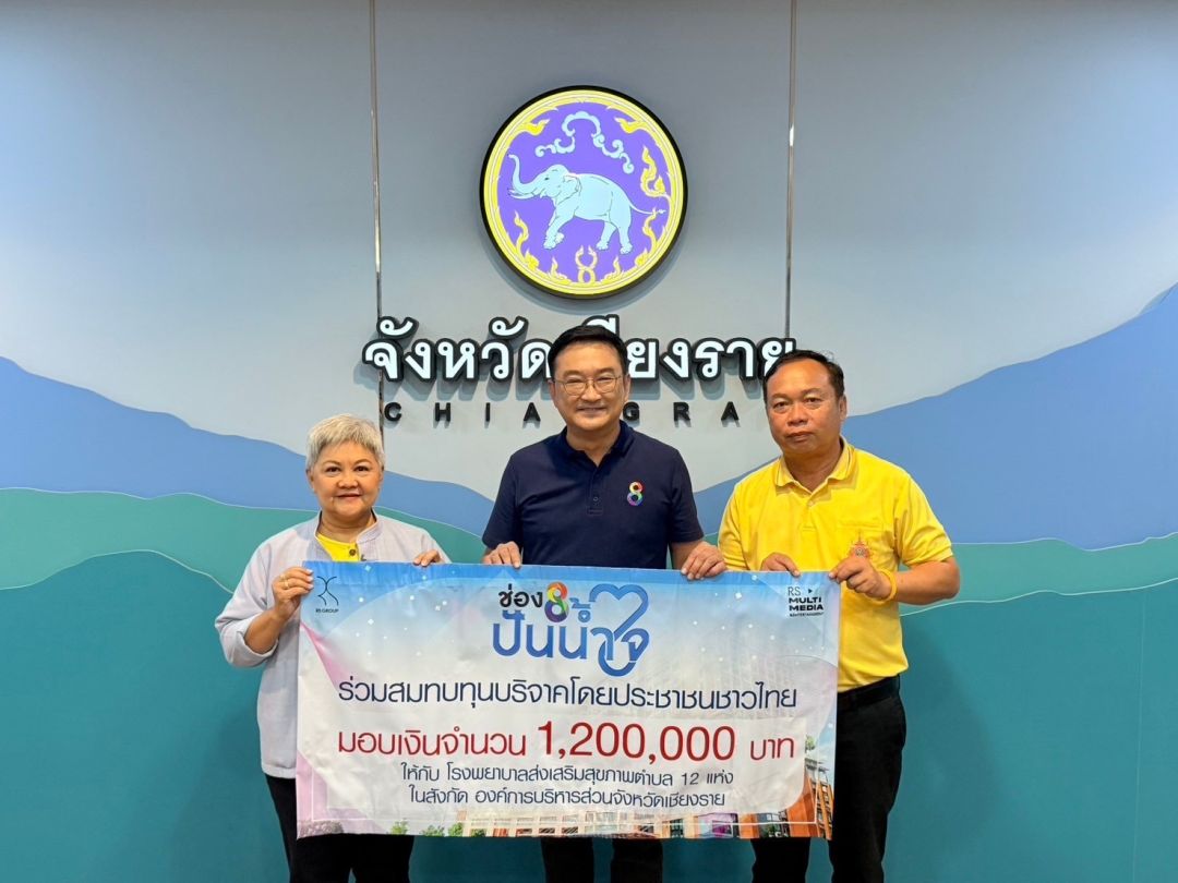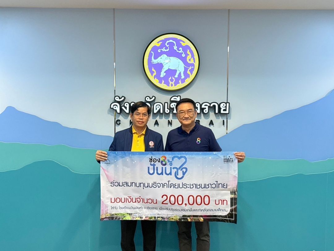 โค้งสุดท้ายในการส่งมอบเงินบริจาคจากประชาชนชาวไทย สำหรับโครงการ “ช่อง 8 ปันน้ำใจ” ช่วยเหลือผู้ประสบอุทกภัยและฟื้นฟูสถานที่ที่ได้รับความเสียหายจากเหตุการณ์น้ำท่วมในภาคเหนือ พร้อมส่งเสริมสุขภาพและอนามัยให้กับประชาชนอย่างต่อเนื่องที่จังหวัดเชียงราย โดยคุณโจ-ธีระ ธัญญอนันต์ผล บรรณาธิการบริหารสายงานข่าวและผู้ประกาศข่าวช่อง 8 ในเครือ อาร์เอส กรุ๊ป เป็นตัวแทนนำเงินบริจาคของพี่น้องประชาชน ส่งมอบจำนวนเงิน 10,800,000 บาท เพื่อสร้างสะพานแขวนสร้างอาคารเรียน ปรับปรุงอาคารพื้นที่เพื่อการศึกษา และส่งเสริมซื้อรถทันตกรรมเคลื่อนที่ ในโครงการออกหน่วยให้บริการทางทันตกรรมเชิงรุก รวมถึงจัดซื้ออุปกรณ์ทางการแพทย์ให้กับโรงพยาบาลส่งเสริมสุขภาพตำบล 12 แห่งในสังกัดองค์การบริหารส่วนจังหวัดเชียงรายเมื่อวันที่ 2 ธันวาคม 2567ที่ผ่านมา