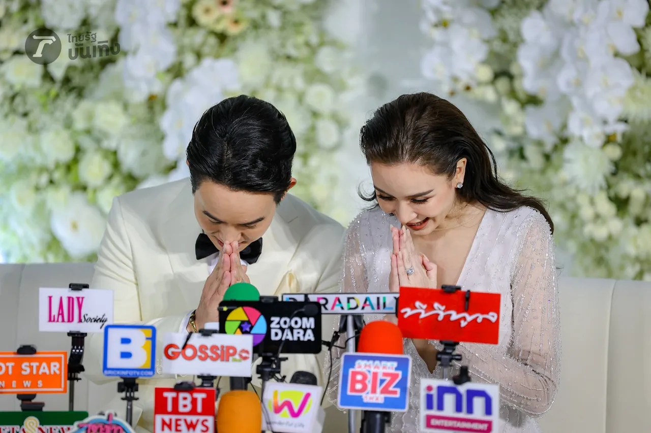 หลังจากที่เมื่อวานนี้ (7 ธ.ค.) นักแสดงสาว เบนซ์ ปุณยาพร ควง แก๊ป วิทนาถ แฟนหนุ่มนักธุรกิจ เข้าพิธีมงคลสมรส ณ โรงแรมรอยัลคลิฟ บีช รีสอร์ท พัทยา จ.ชลบุรี ไปเรียบร้อยแล้ว ในวันนี้ (8 ธ.ค.) ทั้งคู่ได้จัดงานฉลองมงคลสมรส และได้แถลงข่าวกับสื่อมวลชน ซึ่งทั้งคู่ได้เผยถึงความรักของทั้งคู่ให้ได้ฟังว่า