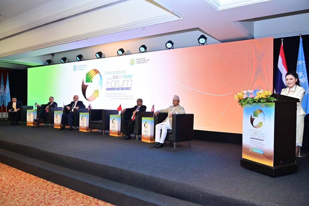 เมื่อวันที่ 9 ธันวาคม 2567 เวลา 09.00 น. ดร.ทวีศักดิ์ ธนเดโชพล อธิบดีกรมพัฒนาที่ดิน ร่วมพิธีเปิดการประชุมนานาชาติว่าด้วยการจัดการทรัพยากรดิน และน้ำ เพื่อความมั่นคงทางอาหารอย่างยั่งยืน (The International Soil and Water Forum 2024) ซึ่งจัดขึ้นระหว่างวันที่ 9 – 11 ธันวาคม 2567 โดยมี ศ.ดร.นฤมล ภิญโญสินวัฒน์ รัฐมนตรีว่าการกระทรวงเกษตรและสหกรณ์ นายฉู ตงหยู ผู้อำนวยการใหญ่องค์การอาหารและการเกษตรแห่งสหประชาชาติ (Food and Agriculture Organization of the United Nations หรือ FAO) รัฐมนตรีหรือผู้แทนระดับรัฐมนตรีของประเทศต่างๆ ผู้บริหารกระทรวงเกษตรและสหกรณ์ รวมทั้งเจ้าหน้าที่ที่เกี่ยวข้อง เข้าร่วมพิธีเปิดการประชุม ณ โรงแรมอนันตรา สยาม กรุงเทพฯ เพื่อสร้างความมุ่งมั่นในเรื่องการจัดการดินและน้ำอย่างบูรณาการที่ยั่งยืน ซึ่งเป็นรากฐานของการพลิกโฉมระบบเกษตรและอาหาร อีกทั้งเพื่อเทิดทูนพระอัจฉริยภาพพระบาทสมเด็จพระบรมชนกาธิเบศร มหาภูมิพลอดุลยเดชมหาราช บรมนาถบพิตร ด้านดินและน้ำ และเป็นโอกาสอันดีในการนำเสนอผลงานวิจัยด้านดินและน้ำของนักวิชาการทั้งไทยและต่างชาติ รวมถึงเป็นเวทีให้แก่ผู้นำไทยและต่างชาติร่วมให้ข้อคิดเห็นและแลกเปลี่ยนการดำเนินงานเพื่อการอนุรักษ์ดินและน้ำเพื่อบรรลุเป้าหมายการพัฒนาที่ยั่งยืนของสหประชาชาติ นอกจากนี้ ประเทศไทยจะได้แสดงออกถึงบทบาทด้านวิชาการด้านการบริหารจัดการดินและน้ำ ภายใต้ “ปฏิญญารัฐมนตรี/แถลงการณ์การจัดการการขาดแคลนน้ำและการพลิกกลับความเสื่อมโทรมของดินเพื่อระบบอาหารเกษตรที่ยั่งยืนและฟื้นตัวได้” และเป็นการสร้างเครือข่ายนักวิชาการของไทยและต่างชาติในด้านการจัดการดินและน้ำแบบบูรณาการที่ยั่งยืนต่อไป