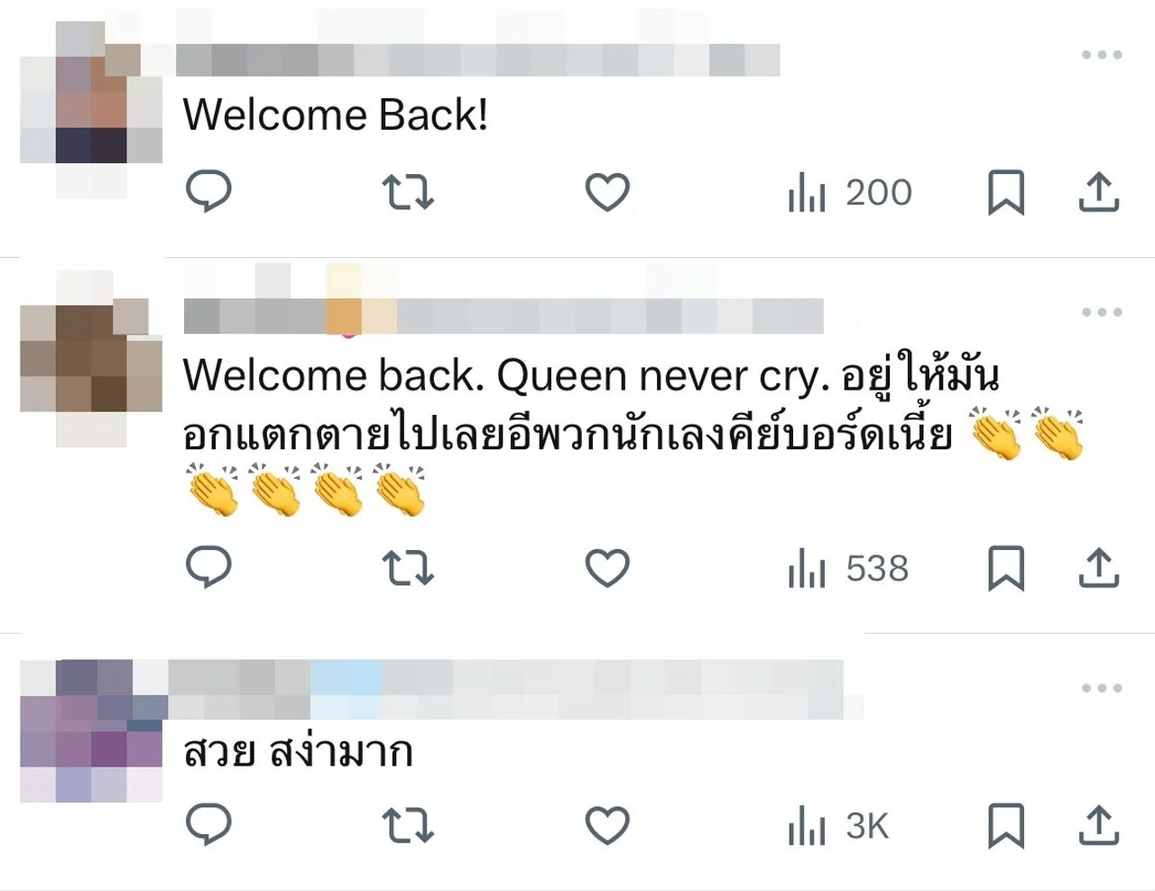 สู้กับความรู้สึกตัวเองดีกว่าค่ะน้องใหม่..มองทุกอย่างเป็นบวกแล้วสิ่งดีๆ จะเข้ามาหาเราเอง ส่วนใครจะไม่ชอบเรานั่นมันปัญหาของเขา เราโฟกัสคนที่รักเราก็พอ, เป็นกำลังใจให้นะคะ ใครก็เคยผิดพลาดทั้งนั้น อยู่ในจุดที่มีแสงคนเลยมองเห็นง่าย การวางตัวเอย คำพูดเอย มันเลยต้องเหนื่อยมากกว่าสักหน่อย อย่าล้มนาน คนที่จิตใจไม่ดีคงรอเหยียบซ้ำ สู้ๆ ค่ะ, Welcome back. Queen never cry. อยู่ให้มันอกแตกตายไปเลยอีพวกนักเลงคีย์บอร์ดเนี้ย”