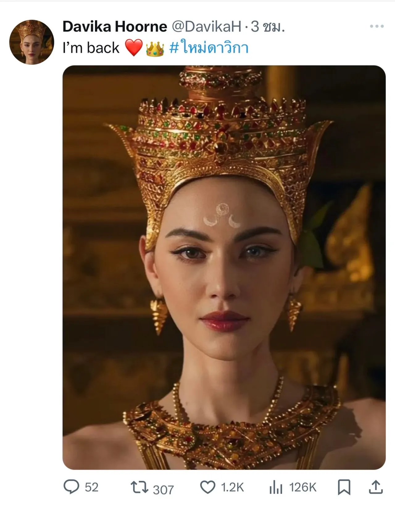แต่ล่าสุด ในวันนี้ ใหม่ ดาวิกา ได้กลับมาเปิด account อีกครั้งหลังจากที่ปิดไป 1 วัน พร้อมเปลี่ยนรูปโปรไฟล์ใหม่ และเขียนข้อความว่า “I’m back (อีโมจิหัวใจสีแดง มงกุฎ) #ใหม่ดาวิกา”