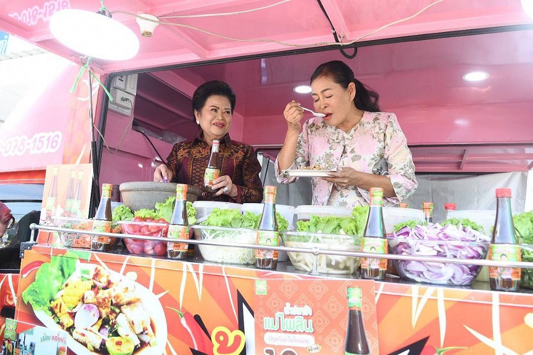 นางชนานาถ ดลมินทร์ หรือ ‘เจ้เพ็ญ‘ ผู้บริหาร ’บลูช็อป’ พร้อมด้วย นางไพลิน โตอิ้ม หรือ ‘แม่ไพลิน’ ผู้บริหาร บริษัทจ่าวิรัชฟู้ดส์และเจ้าของธุรกิจ “น้ำปลาร้าแม่ไพลิน by จ่าวิรัช” แถลงข่าวความร่วมมือครั้งสำคัญในการจัดโปรโมชั่นพิเศษเพื่อเป็นการมอบของขวัญแทนคำขอบคุณลูกค้า ‘ส่งท้ายปีเก่าต้อนรับปีใหม่ 2025’ โดย ‘แม่ไพลิน’ ได้นำน้ำปลาร้าแม่ไพลิน by จ่าวิรัช จัดแคมเปญ “น้ำปลาร้าปันสุขกับบลูช็อป” มาจัดจำหน่ายในร้านบลูช็อปทั้ง 19 สาขา ในราคาสุดพิเศษ เพียง 19 บาท จำนวนทั้งสิ้น 50,000 ขวด ซึ่งการร่วมมือครั้งนี้ของ “น้ำปลาร้าแม่ไพลิน by จ่าวิรัช” กับ “บลูช็อป” มีวัตถุประสงค์ที่สำคัญ เพื่อให้ผู้ที่ชื่นชอบน้ำปลาร้าได้ซื้อไปรับประทานกันในราคาประหยัด ที่สำคัญ ยังเป็นการลดต้นทุนให้กับพ่อค้าแม่ค้าที่ใช้น้ำปลาร้าในการประกอบอาหารจำหน่ายในช่วงเทศกาลปีใหม่อีกด้วย