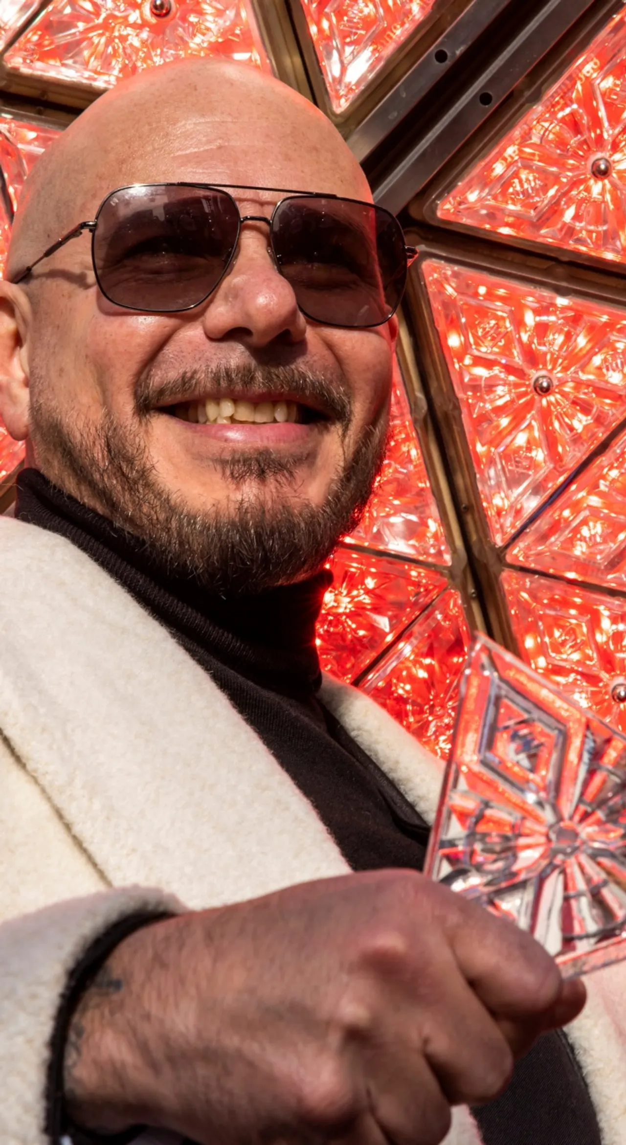 โดยพิตบูล ได้รับเกียรติให้ติดตั้งชิ้นส่วนสุดท้ายของคริสตัลบอลลูกนี้ ก่อนที่จะนำลูกบอลไปเตรียมพร้อมสำหรับงานใหญ่ในปีนี้ต่อไป