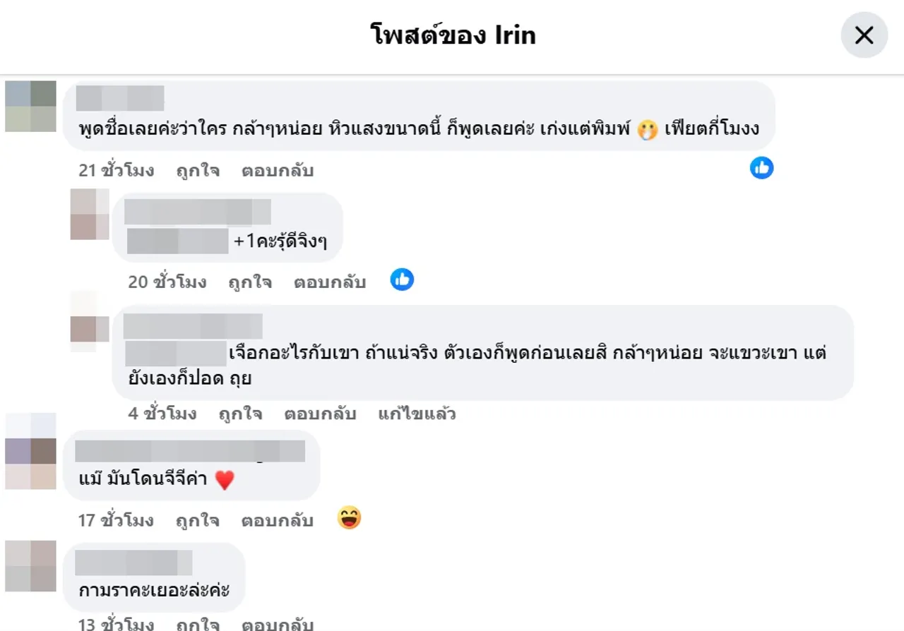 แต่ก็มีคนที่วิจารณ์ว่าหิวแสง ที่โพสต์เรื่องนี้รับรู้เองโดยตรงหรือไม่ อาทิ ที่โพสต์นี้เรื่องจริง รับรู้เห็นเองโดยตรงเหรอคะ?, พูดชื่อเลยค่ะว่าใคร กล้าๆ หน่อย หิวแสงขนาดนี้ ก็พูดเลยค่ะ เก่งแต่พิมพ์ เฟียตกี่โมงง, เขาเป็นอย่างที่พูดจริงเหรอ ฯลฯ