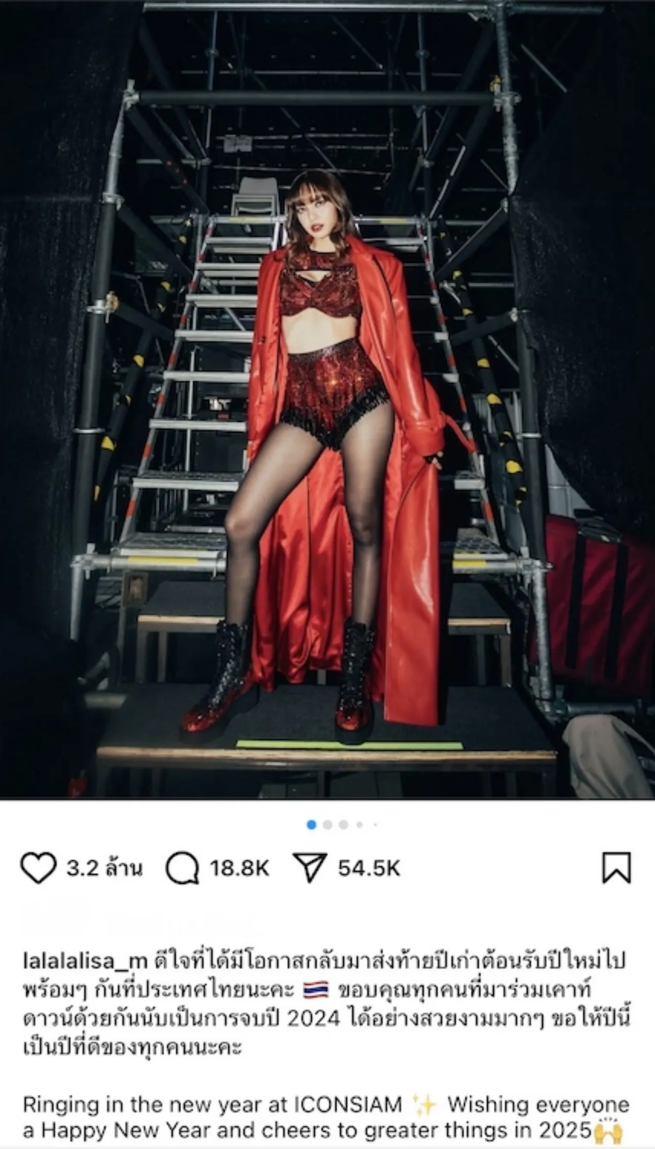 ลิซ่า ชีเสิร์ฟโพสต์แป๊บเดียว 3 ล้านไลค์ ขอบคุณคนไทยส่งท้ายปี 2024