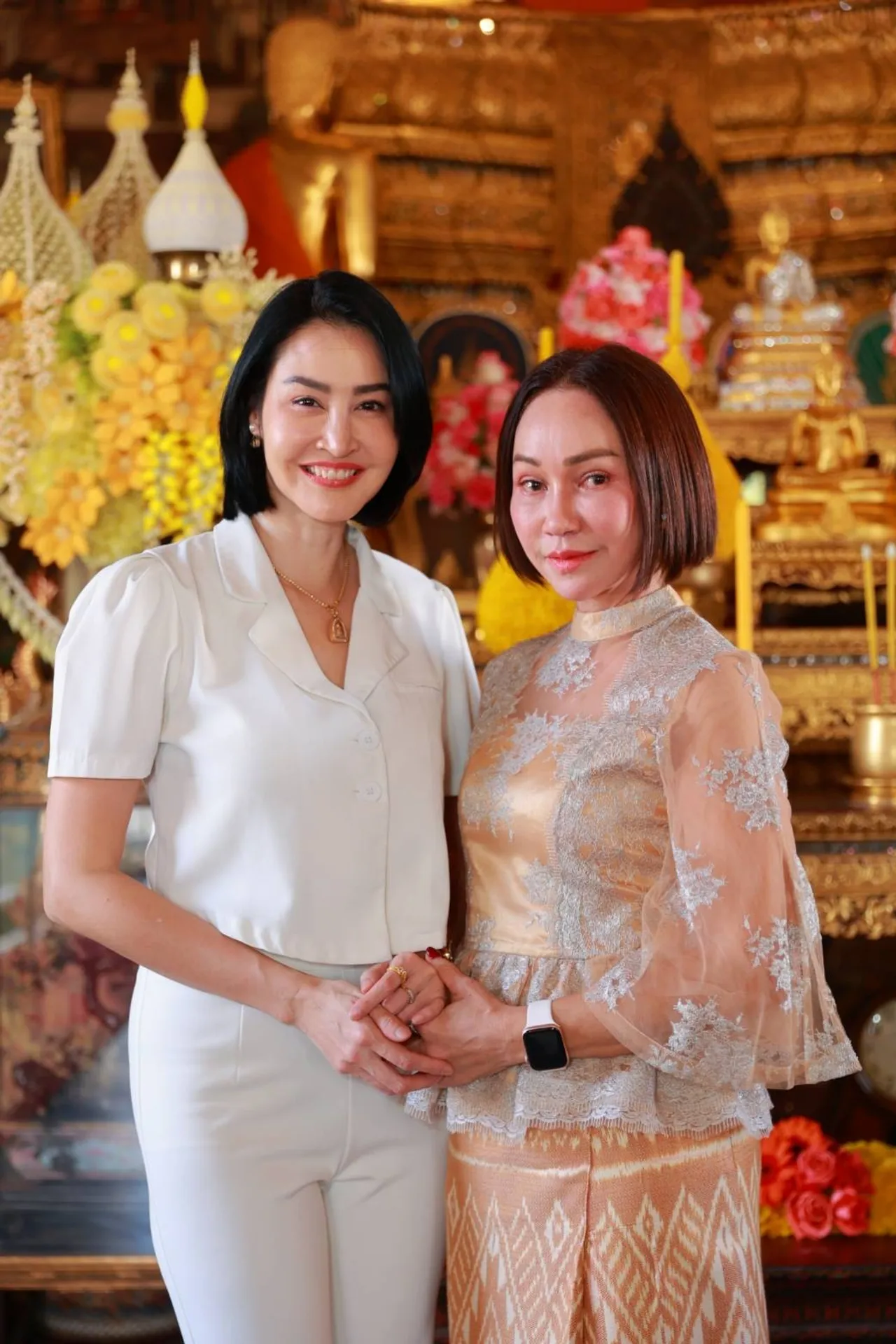 นุ้ย-ษา-อาท-ดี้ ปัทมา นำทีมคนบันเทิงสายบุญห่มผ้าพระปรางค์วัดอรุณฯ