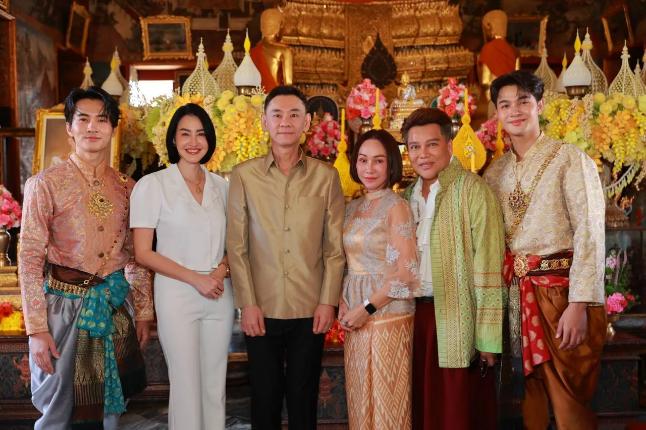 จากนั้น ดร.อำนาจ, ดร.ทวีศักดิ์ เหล่าศิลปินดาราจิตอาสา และคนบันเทิงสายบุญ ถวานผ้าไตร อาทิ ดร.วโรดม ศิริสุข ผู้จัดซีรีส์วายพีเรียด ลอยแก้ว, ณัฐพล นิลดอนหวาย, พรวศิน เรืองนุกูล, ปัทมา ปานทอง, ษา วรรณษา ทองวิเศษ, อาท รณชัย, ดร.ธิชาชา บุญเรืองขาว + น้องน้ำแร่, อังคาร ปะระทัง-บรรจง จันทร์เทพ ผู้จัดซีรีส์ วัยซ่าส์ท้ามิติ, ชญาภา บีเวอร์, ครูเมย์ ภัทดา สิงห์แก้ว, ณมน พัชรวลัย พงษ์ภมร, โซเฟีย ทองบริบูรณ์, เต้ ปฏิพัทธ์ กันฉาย, สุพิชญา ไพฑูลย์, ฮันนี่ ณภัค มุทธาเสถียร เป็นเจ้าภาพผ้าไตร