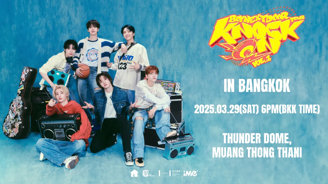 6 หนุ่มบอยกรุ๊ปสุดฮอต BOYNEXTDOOR ทั้ง “ซองโฮ (SUNGHO), รีอู (RIWOO), แจฮยอน (JAEHYUN), แทชาน (TAESAN), อีฮัน (LEEHAN)” และ “อุนฮัก (WOONHAK)” ที่ใกล้จะได้มาขึ้นเวทีแสดงคอนเสิร์ตใหญ่ที่ประเทศไทยแล้ว กับงาน “BOYNEXTDOOR TOUR ‘KNOCK ONVol.1’ IN BANGKOK” ในวันเสาร์ที่ 29 มีนาคม 2568 ณ ธันเดอร์โดม เมืองทองธานี
