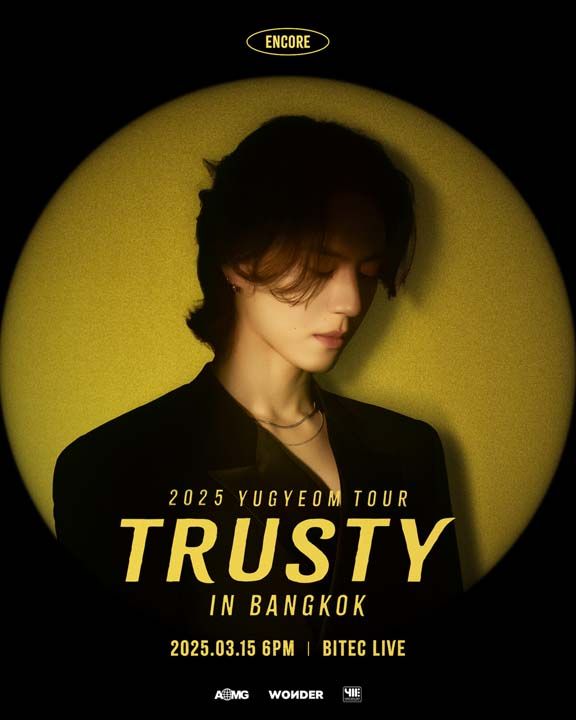 ร่วมด้วยวลีไม่เกินจริงที่ว่า…ไทยแลนด์แดนอากาเซ่! คิกออฟอีเว้นท์แรกแห่งปี 2025 จากผู้จัดไทยคุณภาพที่หลายด้อมถามหาด้วยความคิดถึงอย่าง โฟร์ วัน วัน เอ็นเตอร์เทนเม้นท์ (Four One One Entertainment หรือ 411ent) ของ กึ้ง-เฉลิมชัย มหากิจศิริ จึงจับมือต้นสังกัด เอโอเอ็มจี (AOMG) และ วันเดอร์ (WONDER) ประเทศเกาหลีใต้ ประกาศจัดคอนเสิร์ต “2025 ยูคยอม ทัวร์ [ทรัสตี้] อังกอร์ อินแบงคอก” (2025 YUGYEOM TOUR [TRUSTY] ENCORE IN BANGKOK) ที่ประเทศไทยในวันเสาร์ที่ 15 มีนาคม 2568 เวลา 18.00 น. ณ ไบเทค ไลฟ์ (BITEC Live) #2025TRUSTY_ENCORE_IN_BANGKOK