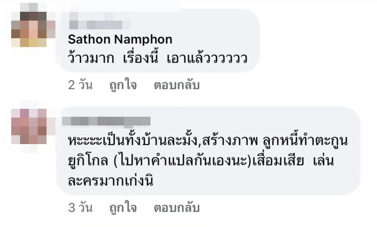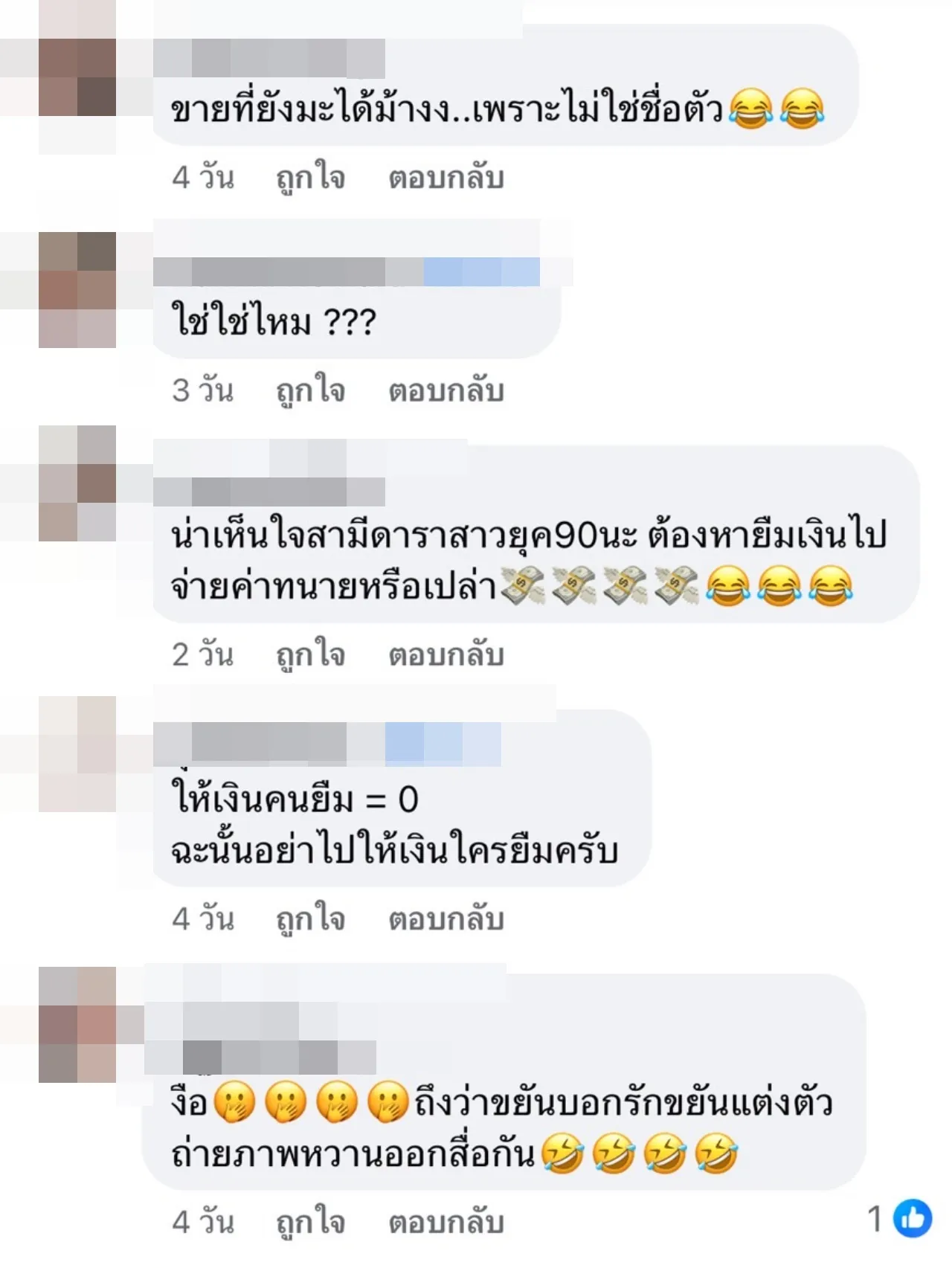 งานนี้หลายคนที่ติดตามต่างเข้ามาคอมเมนต์กันยกใหญ่ อาทิ หะะะะเป็นทั้งบ้านละมั้ง, สร้างภาพ ลูกหนี้ทำตะกูล ยูกิโกล (ไปหาคำแปลกันเองนะ) เสื่อมเสีย เล่นละครมากเก่งนิ, น่าเห็นใจสามีดาราสาวยุค 90 นะ ต้องหายืมเงินไปจ่ายค่าทนายหรือเปล่า, ให้เงินคนยืม = 0 ฉะนั้นอย่าไปให้เงินใครยืมครับ, งือ ถึงว่าขยันบอกรักขยันแต่งตัวถ่ายภาพหวานออกสื่อกัน, มันๆๆ มิมียางอายเอาเลยๆๆ 555555, โคตรรวยมายืมเงินอีกมั้งคะ เป็นต้น