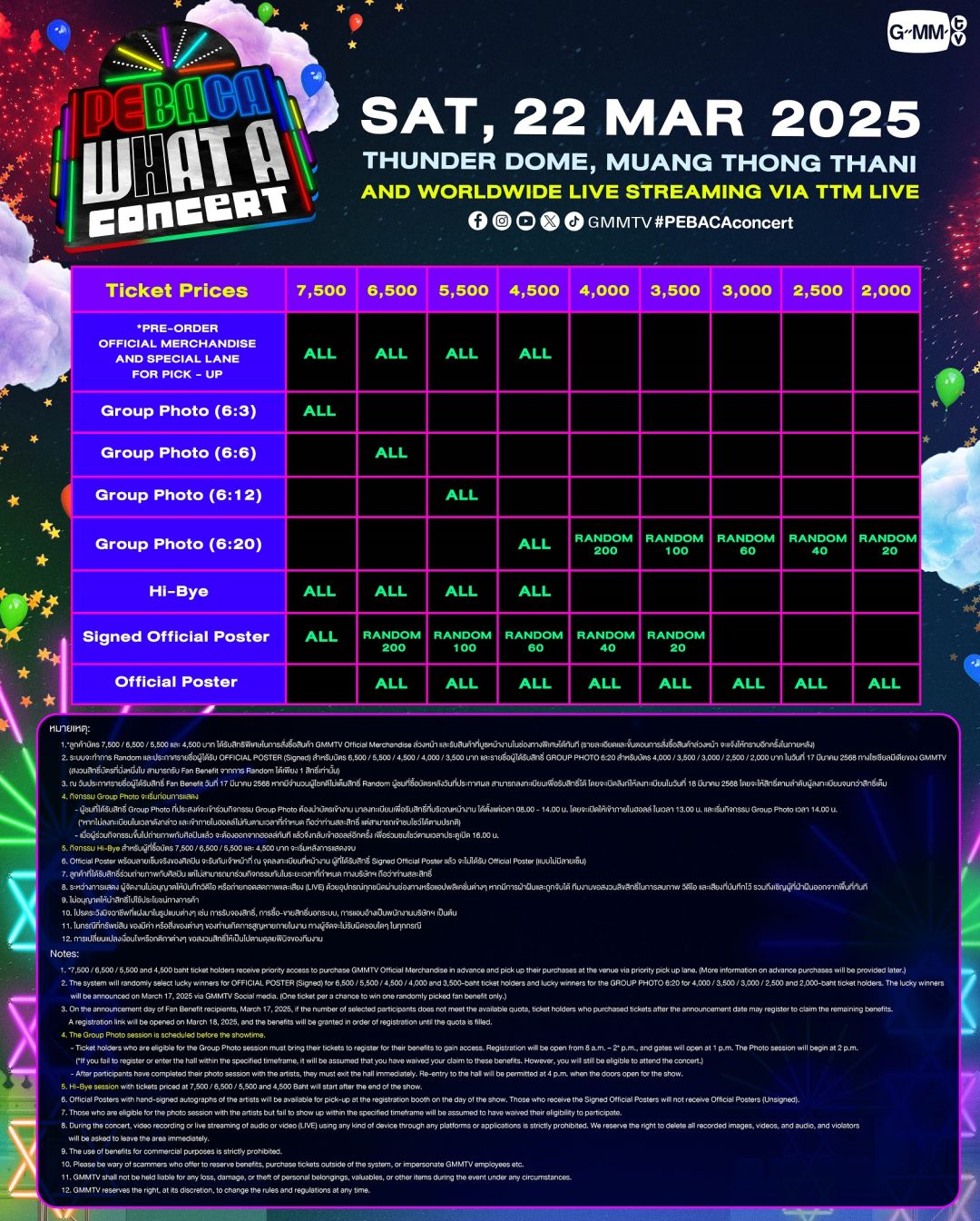 “GMMTV” คอนเทนต์โพรไวเดอร์ชั้นนำของเมืองไทย เตรียมเปิดสมรภูมิความสนุกสุดมันส์ครั้งใหญ่ กับคอนเสิร์ตแรกของปีที่รวมตัว 3 คู่จิ้นคู่ฮอตยอดนิยม “คริส-พีรวัส แสงโพธิรัตน์, สิงโต-ปราชญา เรืองโรจน์, ออฟ-จุมพล อดุลกิตติพร, กัน-อรรถพันธ์ พูลสวัสดิ์, เต-ตะวัน วิหครัตน์, นิว-ฐิติภูมิ เตชะอภัยคุณ” แท็คทีมชวนแฟนๆ ไปปล่อยจอยสุดขีดกับงาน “PEBACA WHAT A CONCERT” ในบรรยากาศแห่งความสนุกสุดทัชใจที่ 6 หนุ่ม เนรมิตโชว์สุดอลังการตระการตา ร้อง เล่น เต้นสะบัด เสิร์ฟความสุขให้แฟนๆ ครบสีสัน พร้อมสร้างรอยยิ้มให้แฟนๆ แบบเรียลไทม์ ไปพร้อมกับแฟนคลับทั่วโลก ที่รับชมผ่าน Live Streaming ทาง “TTM LIVE” ที่สามารถรองรับผู้ชมได้ครอบคลุมทั่วโลก ในวันเสาร์ที่ 22 มีนาคม 2568 ณ ธันเดอร์โดม เมืองทองธานี เวลา 17.00 น. เป็นต้นไป งานนี้แฟนๆ มาร่วมอัปมู้ดความสนุก ความประทับใจ ไปด้วยกันเยอะๆ นะคะ รับรองว่าครบทุกอรรถรสแน่นอน