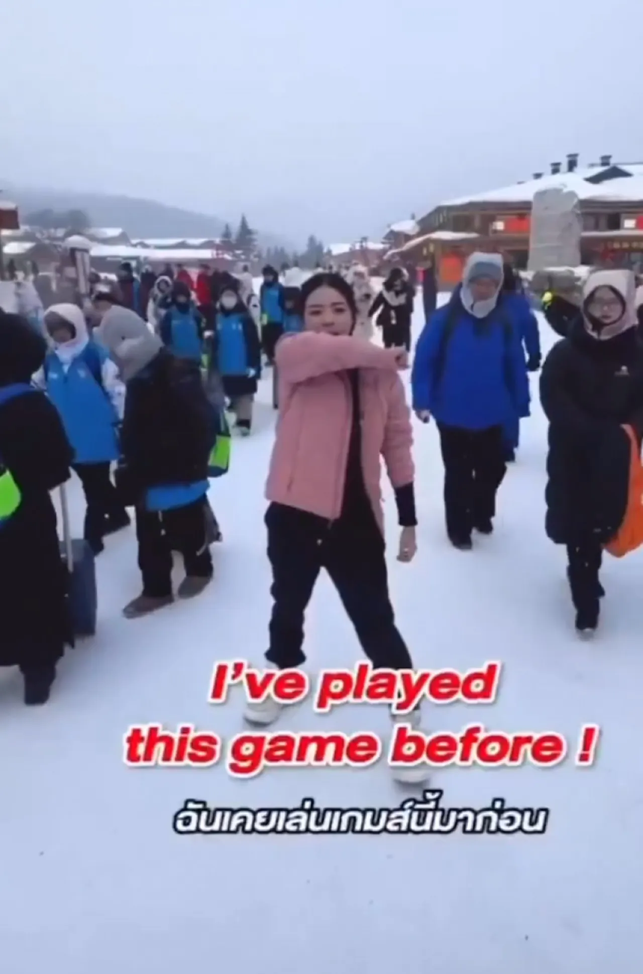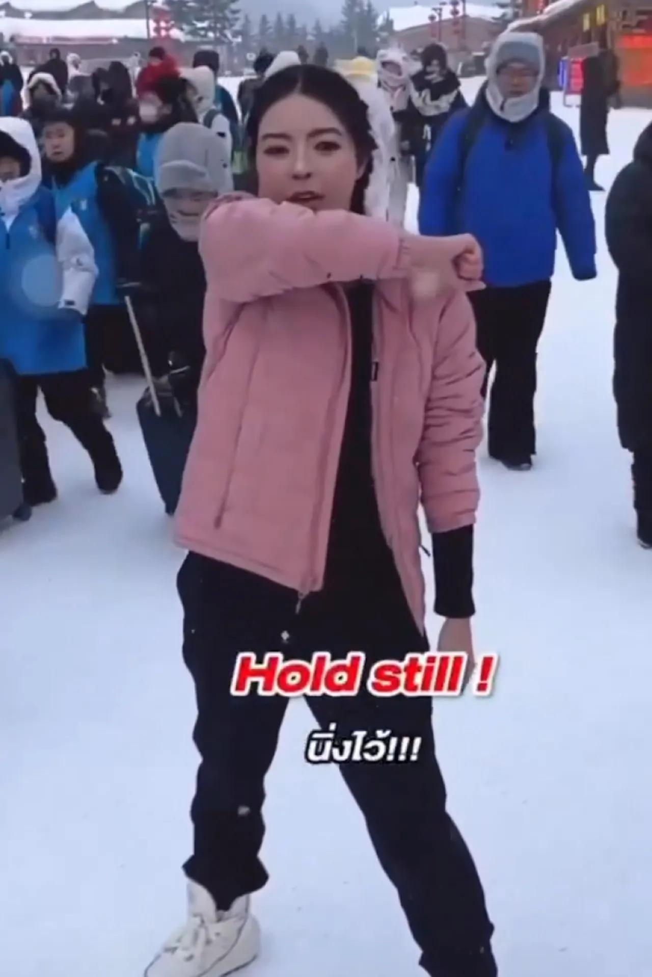 “hold still (นิ่งไว้) I’ve played this game before! (ฉันเคยเล่นเกมนี้มาก่อน) hold still (นิ่งไว้) Do not move (อย่าขยับ) And cover your mouth (ปิดปากตัวเองด้วย!) hold still (นิ่งไว้) Or we are going to die (ไม่เช่นนั้นเราจะตายกันหมด!) hold still (นิ่งไว้), hold still (นิ่งไว้)”