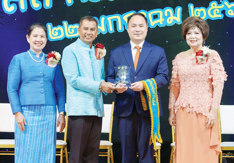 กัณฑ์พงศ์ สุระวรรณวิจิตร รอง ปธ.หอการค้าอุดรธานีรับโล่เกียรติคุณในโอกาสรับรางวัลลูกที่มีความกตัญญูกตเวทีอย่างสูงต่อแม่