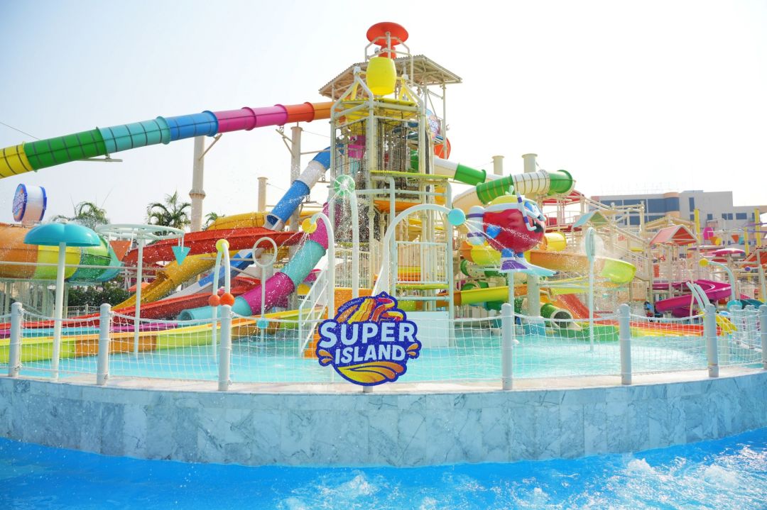 1. Super Island (ซูเปอร์ ไอส์แลนด์) สนุกกับ Aqua Tower (อควา ทาวเวอร์ ) ขนาดยักษ์ พร้อมสไลด์ถึง 18 แบบ มอบประสบการณ์ความท้าทายแตกต่างกัน เหมาะสมสำหรับทุกคนในครอบครัว พร้อมเครื่องเล่น ไฮไลต์ เช่น Super Crazy Kraken (ซูเปอร์ เครซี่ คราเคน) สนุกสุดเหวี่ยงกับสไลด์หนวดปลาหมึกยักษ์ ที่จะเหวี่ยงผู้เล่นไปมาตามรางคดเคี้ยว Super Twister (ซูเปอร์ ทวิสเตอร์) สไลด์เดอร์พายุหมุนสายรุ้ง ตื่นเต้นกับสไลด์ที่จะพาดำดิ่งสู่ใจกลางพายุหมุนสายรุ้ง Super Free Fall (ซูเปอร์ ฟรี ฟอล)สัมผัสประสบการณ์สภาพเสมือนไร้น้ำหนัก กับ กามิกาเซ่ สไลด์ ท่อเปิดทิ้งดิ่ง ความชัน 66 องศา ขึ้นชื่อว่ามีความชันที่สุดในไทย Super Plunge (ซูเปอร์ พลันจ์) ท้าทายความกล้าต่อเนื่อง กับกามิกาเซ สไลด์ ท่อเปิดทิ้งดิ่ง ความชัน 51 องศา Mako Rush (มาโก รัช) สไลด์เดอร์ความเร็วสูง พุ่งทะยานผ่านวงแหวนไฟก่อนลงสู่พื้นน้ำและ Vortex (วอร์เท็กซ์) สไลด์เกลียวมหาสนุก พร้อมเอฟเฟกต์แสง สุดตระการตา