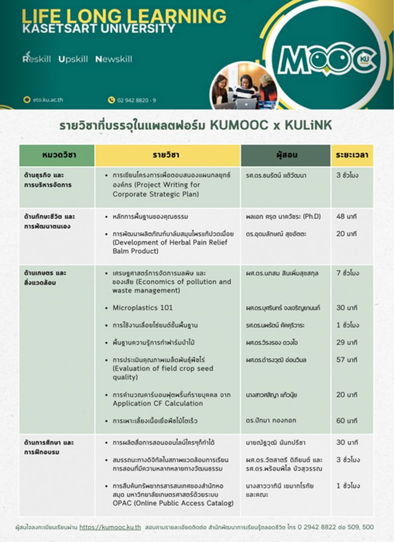 ม.เกษตรศาสตร์ ชวนทุกคนทุกวัย ร่วมการเรียนรู้ตลอดชีวิต ผ่าน ‘KUMOOC x KULiNK’ เรียนฟรี มีใบเซอร์