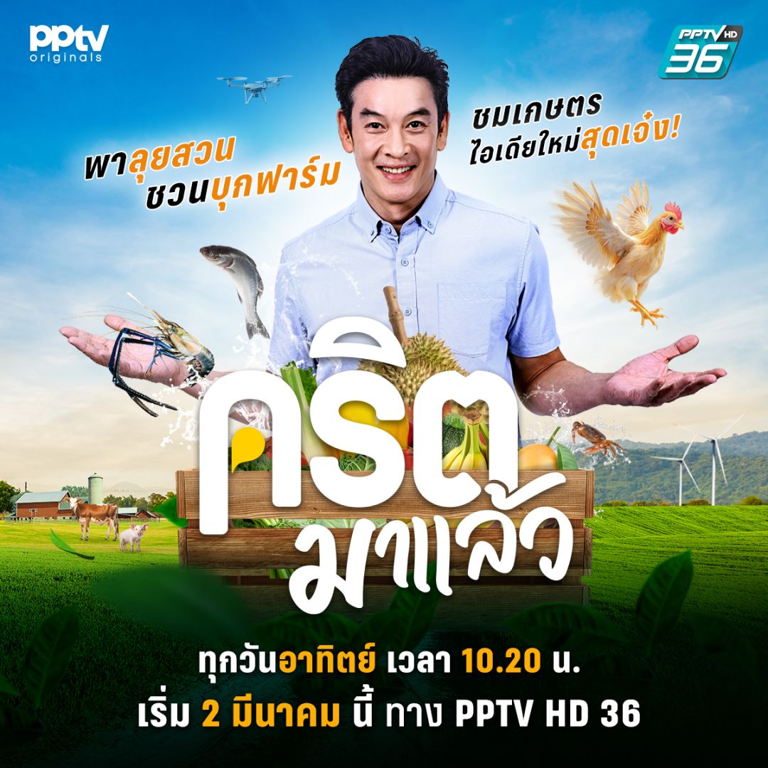 ห้ามพลาด! รายการใหม่ “คริตมาแล้ว” ออกอากาศทุกวันอาทิตย์ เวลา 10.20 น. ทางพีพีทีวี เอชดี ช่อง 36 หรือรับชมได้ทาง YouTube ช่อง PPTV ORIGINAL เริ่มตอนแรก 2 มีนาคม นี้ เตรียมพบกับความรู้ ความสนุก และแรงบันดาลใจในการทำเกษตรกรรมไปพร้อมกัน!