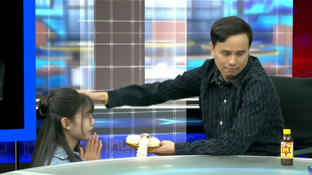 โดยโมนำพวงมาลัยไปไหว้ขอขมา พร้อมกับพูดว่า “เรื่องทั้งหมดเกิดจากเด็ก แล้วอาจารย์ต้องลงมาเคลียร์มันไม่จำเป็นเลย หนูอยู่กับบอส (เสียงสั่น) หนูรู้ตลอดว่าอาจารย์คอยป้อนงานให้ ผลักดันแฟนเก่าหนู และหนูรู้ว่าอาจารย์เป็นอย่างไร แต่หนูก็ทำให้มันเป็นแบบนี้ หนูเลยอยากกราบขอโทษอาจารย์ค่ะ”