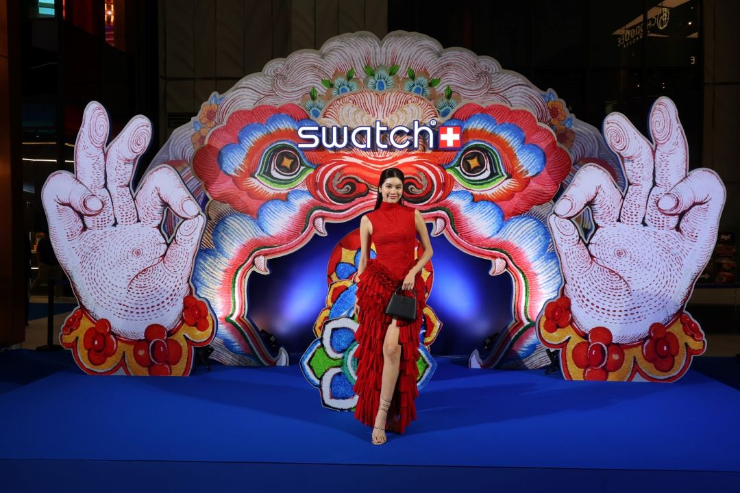 และเพื่อเป็นการเฉลิมฉลองร้านสาขาใหญ่ที่สุดในโลก ในกรุงเทพมหานคร อีกหนึ่งไฮไลท์ของงานคือการเปิดตัวนาฬิกา Swatch Destination Art Bangkok รุ่น THE WANDERER ซึ่งออกแบบโดยไทยดีไซเนอร์ ยูน-ปัณพัท เตชเมธากุล ด้วยแรงบันดาลใจจาก ‘หนุมาน’ ตัวละครเอกจากเรื่องรามเกียรติ์ ไปจนถึงลายไทยอันวิจิตรบรรจง และยังได้แรงบันดาลใจจากความนิยมในการพกเครื่องรางของสังคมไทย โดยหนุมานนั้นขึ้นชื่อว่ามีอำนาจในการคุ้มครอง ทั้งยังจงรักภักดีไม่มีสั่นคลอน ซึ่งเป็นหัวใจการออกแบบของผลงานชิ้นนี้ นอกจากงานศิลป์ลวดลายดาวและเดือน จากลายไทยประจำยามอันงดงามชวนฝันแล้ว นาฬิกาสีสันสดใสเรือนนี้จะทำหน้าเป็นเครื่องรางที่คอยปัดเป่าพลังงานลบอีกด้วย นาฬิการุ่นนี้จะเป็นสื่อกลางชวนคิดถึงมรดกทางวัฒนธรรมอันงดงามของไทย เชิดชูความมีชีวิตชีวาและความสนุกสนานของเมืองหลวงของไทย