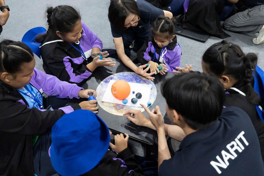 การมาเยือนเชียงใหม่ในครั้งนี้ นักเรียนและคณะครูจากโรงเรียนธรรมิกวิทยา รวมถึงอาสาสมัครจากบางกอกแอร์เวย์ส ได้เข้าร่วมกิจกรรมทั้งหมด 2 วันเต็ม วันแรกได้เดินทางสู่อุทยานดาราศาสตร์สิรินธร เพื่อร่วมกิจกรรมดาราศาสตร์ “ท้องฟ้าในมือฉัน” ภายในท้องฟ้าจำลอง เรียนรู้การดูดาวเบื้องต้น รู้จักกลุ่มดาวในหกเหลี่ยมฤดูหนาว ด้วยมือสัมผัสผ่านอุปกรณ์ทรงกลมท้องฟ้าที่ NARIT ได้พัฒนาขึ้น กิจกรรม “ย่อส่วนระบบสุริยะ” เปรียบเทียบขนาดของดาวเคราะห์ในระบบสุริยะผ่านการสัมผัส และกิจกรรม “สร้างแบบจำลองดาวหาง” เรียนรู้องค์ประกอบและปั้นดาวหางเสมือนจริง