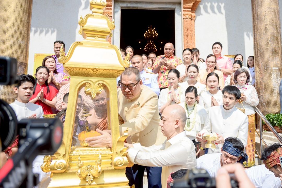 ‘เต๋า ภูศิลป์’ ร่วมกับ ‘อ.มีชัย แต้สุจริยา’ ศิลปินแห่งชาติ ในพิธีสรงน้ำพระแก้วบุษราคัม