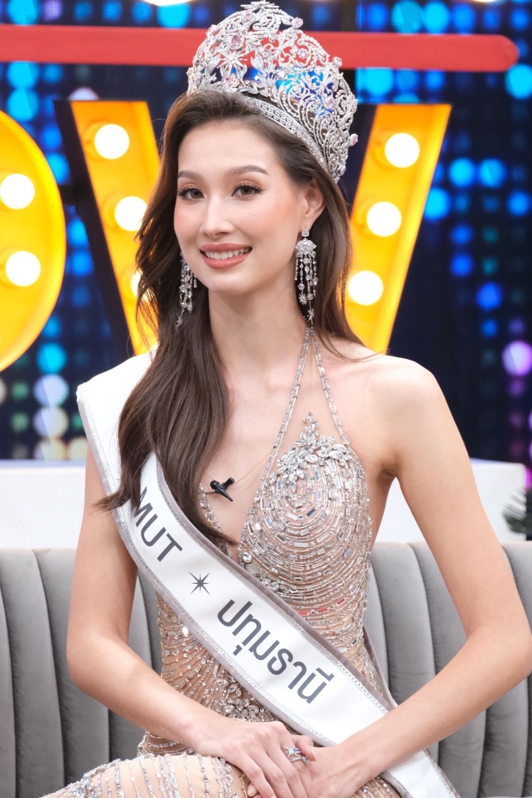 นาตาลี : สวัสดีค่ะ นาตาลี – นัฐลี ดูเชียง ได้ที่ 4 นะคะ รองอันดับ 3 มิสยูนิเวิร์สปทุมธานีค่ะ