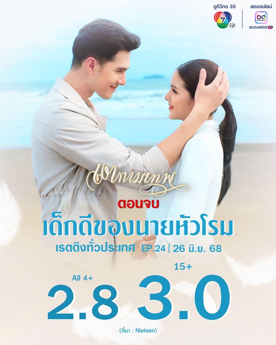 เดินทางมาถึงบทสรุป และลาจอไปเป็นที่เรียบร้อยแล้ว สำหรับละคร “เงากามเทพ” ทางช่อง 7HD ผลิตโดยค่าย กันตนา มูฟวี่ ทาวน์ (2002) นำแสดงโดย มิกค์ ทองระย้า และกานต์-ณัฐชา รัตน์ชยางคานนท์ ที่ปิดม่านความสนุกด้วยเรตติ้ง 15+ ทั่วประเทศ 3.0 (ข้อมูลวันที่ 26 มิถุนายน 2568) เรียกว่า คุณโรม กับดอกเทียน คว้าหัวใจแฟนละครได้อยู่หมัด โดยพระเอก มิกค์ ได้เปิดใจขอบคุณแฟนละคร ผู้จัด ทีมงาน