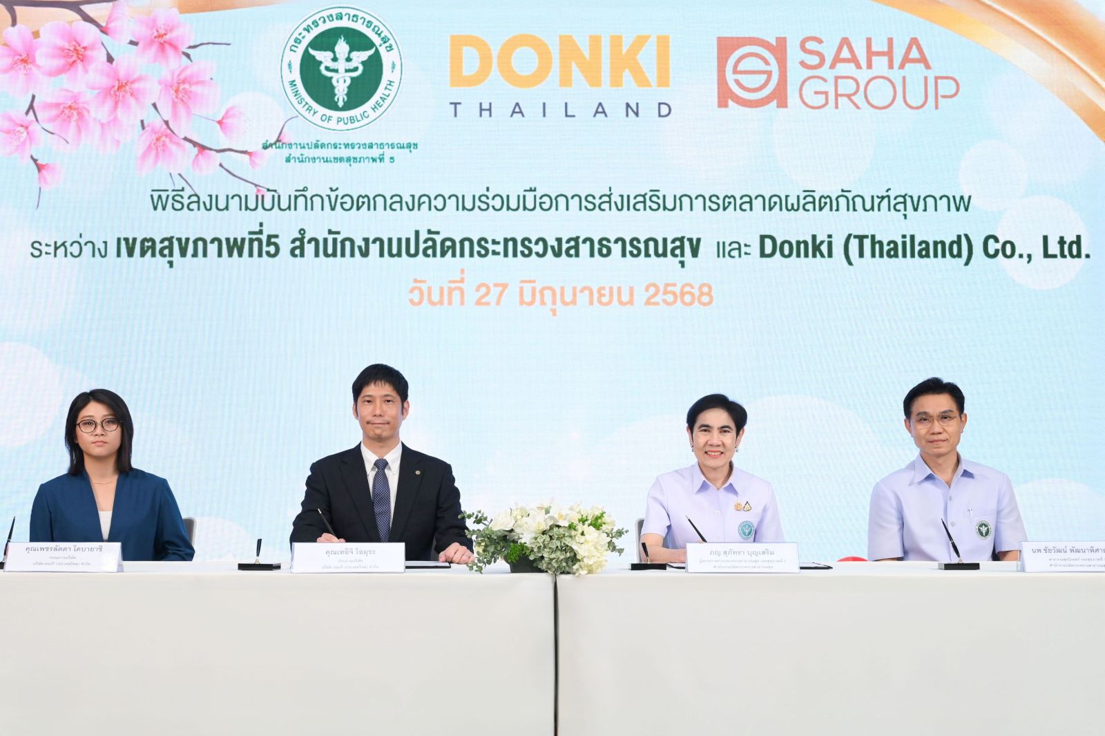 บริษัท ดองกิ (ประเทศไทย) จำกัด ร่วมกับเขตสุขภาพที่ 5 สำนักงานปลัดกระทรวงสาธารณสุข ลงนามบันทึกข้อตกลงร่วมกัน (MOU) เพื่อยกระดับและส่งเสริมการตลาดผลิตภัณฑ์สุขภาพจากชุมชนท้องถิ่น พร้อมผลักดันการพัฒนาคุณภาพผลิตภัณฑ์และขยายตลาดทั้งภายในประเทศและต่างประเทศ