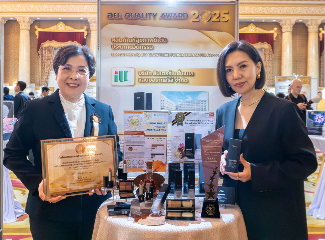 บริษัท อินเตอร์เนชั่นแนล แลบบอราทอรีส์ จำกัด หรือ ILC ผู้ผลิตเครื่องสำอางรายแรกของประเทศไทยที่เปิดให้บริการมานานกว่า 55 ปีตอกย้ำความเป็นผู้นำด้านนวัตกรรมด้วยการคว้ารางวัล อย.ควอลิตี้ อวอร์ด 2568 สาขาผลิตภัณฑ์สุขภาพดีเด่นประเภทนวัตกรรม จากผลิต ภัณฑ์ BSC Authentiq Bio Glow Fluid Foundation SPF50 PA++++ รองพื้นสูตรโกลว์ของแบรนด์ BSC ที่วางจำหน่ายโดย บริษัท ไอ.ซี.ซี. อินเตอร์เนชั่นแนล จำกัด (มหาชน) มาตั้งแต่ปี 2567 และได้ยื่นขอจดอนุสิทธิบัตรสารสกัดที่เป็นส่วนผสมในผลิตภัณฑ์เครื่องสำอางเป็นรายแรกของประเทศไทยเรียบร้อยแล้ว