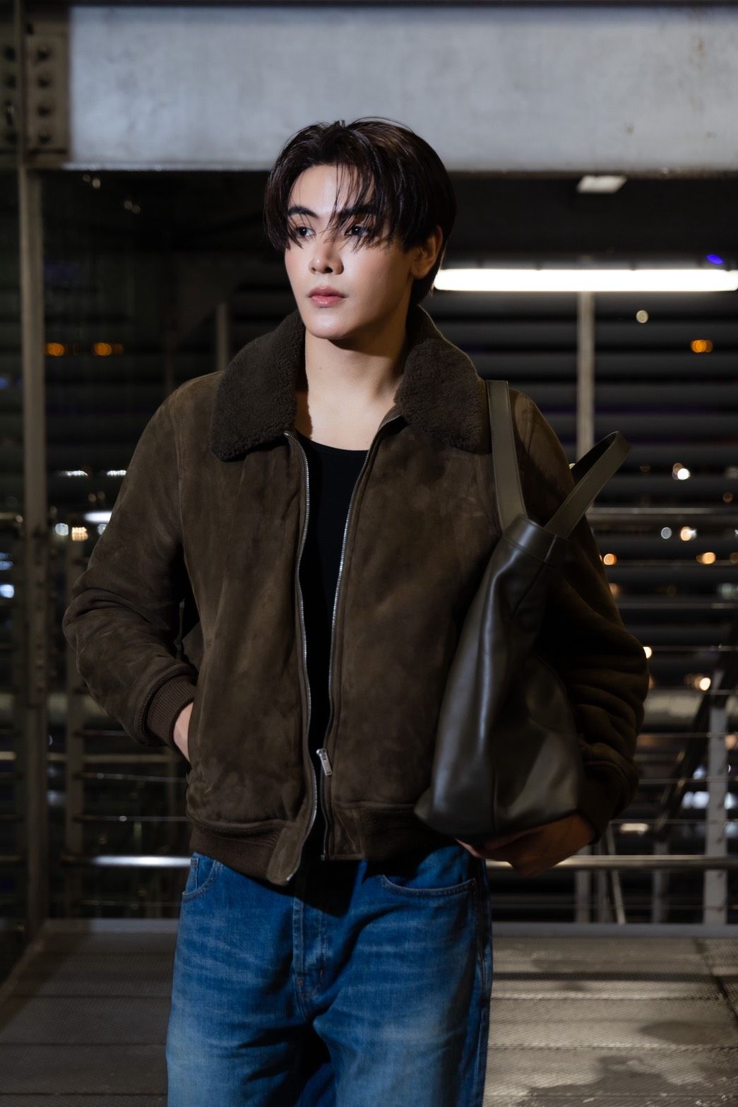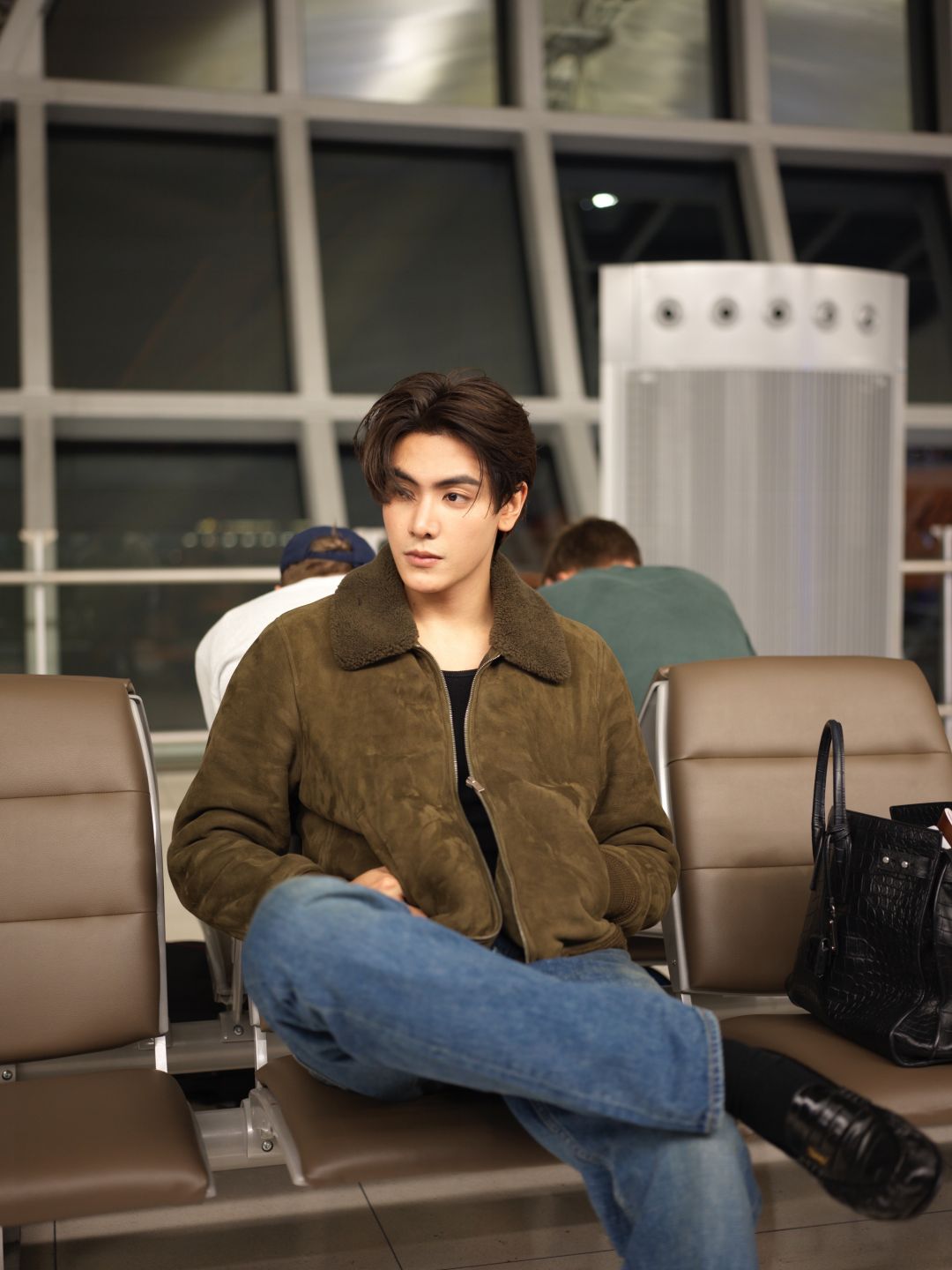 อุ่นเครื่องก่อนเดินทางด้วย แอร์พอร์ตลุคสุดเท่ ที่ผสมผสานความเรียบโก้ในสไตล์ Saint Laurent ได้อย่างลงตัว โดย “จุง อาเชน” เลือกสวม Bomber Jacket in Suede and Shearling (Kaki Foncé) คู่กับ HIGH-RISE JEANS IN HERITAGE VINTAGE BLUE DENIM (HERITAGE VINTAGE BLUE) สะพายกระเป๋า Y MAXI TOTE IN LEATHER (BLACK) แมตช์เข้ากับเครื่องประดับสุดคูลที่ช่วยขับลุคให้สมบูรณ์แบบ พร้อมออกเดินทางไปยังกรุงปารีส ประเทศฝรั่งเศส เพื่อเข้าร่วมชม Saint Laurent by Anthony Vaccarello Women’s Summer 2026 ในงาน Paris Fashion Week 2026 วันที่ 29 กันยายน 2568 นี้