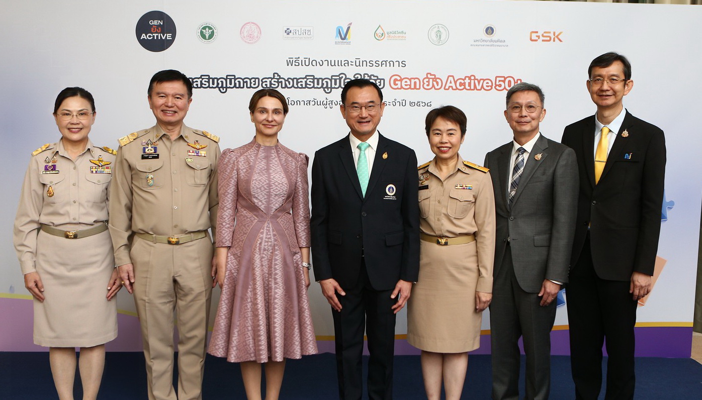 โครงการ Gen ยัง Active 50+ จัดเสวนา “บูรณาการเชิงรุกเพื่อส่งเสริมสุขภาพเชิงป้องกันในระยะยาวของประเทศไทย” ในงาน “ส่งเสริมภูมิกาย สร้างเสริมภูมิใจ ให้วัย Gen ยัง Active 50+” เนื่องในวันผู้สูงอายุสากล (International Day of Older Persons) ระดมผู้กำหนดนโยบายสุขภาพระดับประเทศ กรมควบคุมโรค กรมอนามัย สถาบันวัคซีนแห่งชาติ สำนักงานหลักประกันสุขภาพแห่งชาติ กรุงเทพมหานคร และคณะแพทยศาสตร์ศิริราชพยาบาล ร่วมแสดงวิสัยทัศน์และแนวทางการขับเคลื่อนระบบสุขภาพไทย ตอบโจทย์ความท้าทายของสังคมสูงวัย เพื่อพัฒนาคุณภาพชีวิตของผู้สูงอายุในประเทศไทยให้ดีขึ้นอย่างยั่งยืน ที่ โรงแรมสยามแคมเปนสกี้ กรุงเทพมหานคร