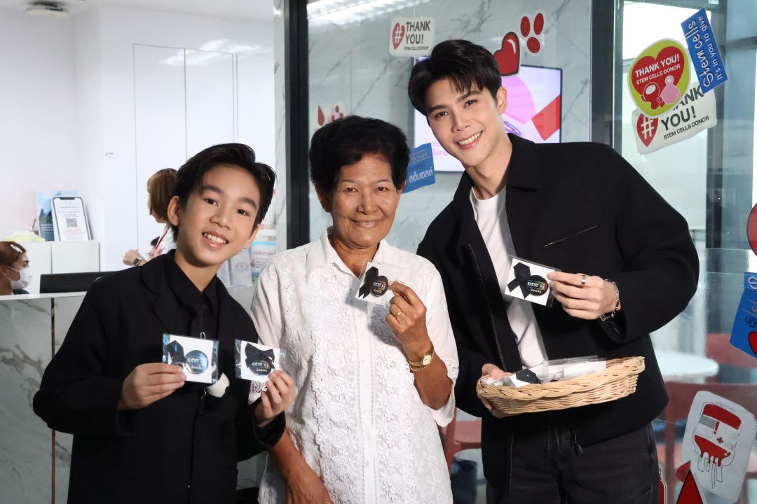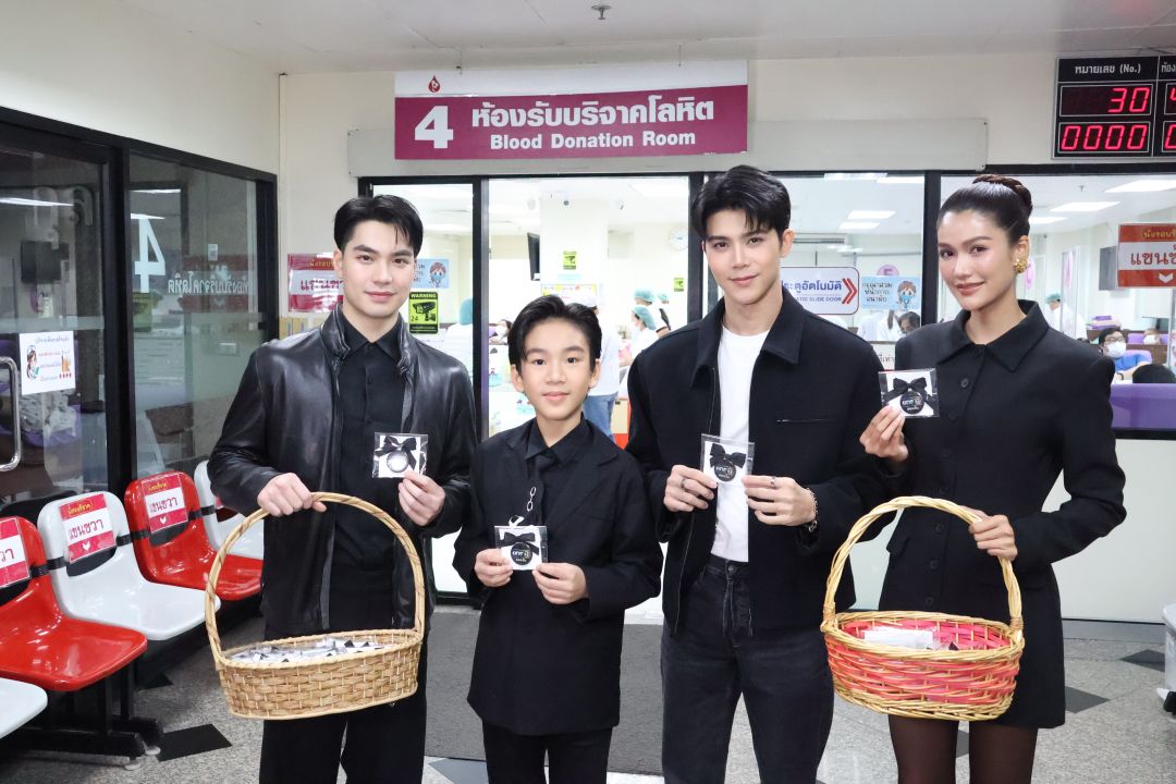 ‘ช่องวัน31’ ส่งนักแสดง ‘เอม-แนท-นิว-เจ้าคุณ’ แจกริบบิ้นดำถวายความอาลัย แก่ผู้มาบริจาคโลหิต