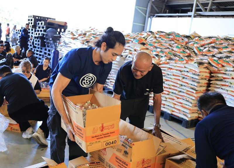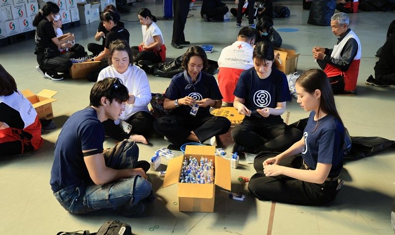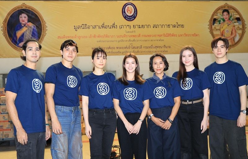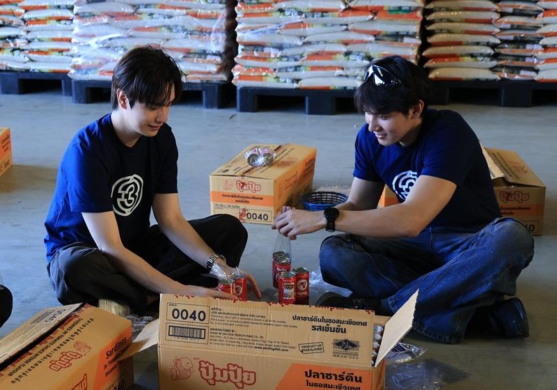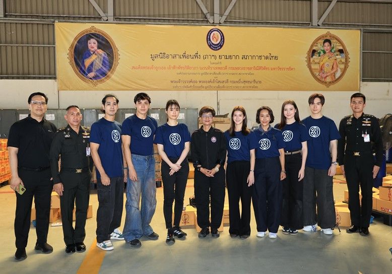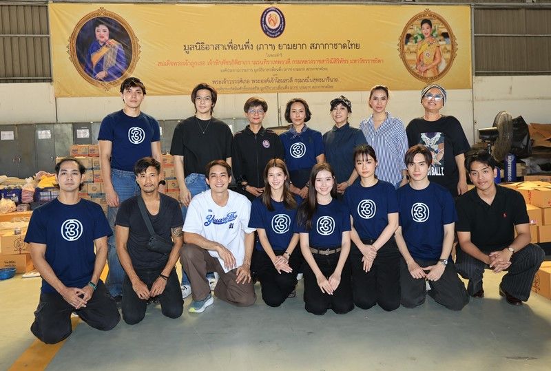 โดย คุณปริศนา กล่ำพินิจ AVP กิจการองค์กร ตัวแทนผู้บริหารสถานีโทรทัศน์ไทยทีวีสีช่อง 3 พาทีมนักแสดง สมิธ ภาสวิชญ์ บูรณนัติ – ยิหวา ปรียากานต์ ใจกันทะ – ตี๋ ธนพล จารุจิตรานนท์ – ปอม ภาสกร เครือโสภณ – เบสท์ ชนิดาภา พงศ์ศิลป์พิพัฒน์ และ นีญ่า มากีลา ร่วมกับนักแสดงจิตอาสา มูลนิธิสวัสดิการนักแสดง จับมือองค์กรพันธมิตร จิตอาสาภาคประชาชน และกำลังพลจากกองทัพ พร้อมด้วยเจ้าหน้าที่มูลนิธิฯ ร่วมกันจัดเตรียมเครื่องอุปโภคบริโภคที่จำเป็นต่อการดำรงชีพ และบรรจุลงถุงยังชีพสีม่วง – สีส้ม แยกตามฐานต่างๆ จำนวน 12,600 ชุด พร้อมลำเลียงขึ้นรถบรรทุก เพื่อส่งไปช่วยเหลือบรรเทาทุกข์ให้กับผู้ประสบภัยต่อไป