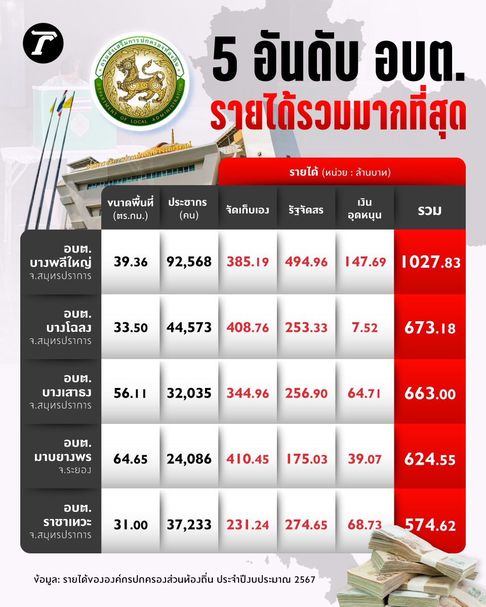 ส่อง 5 อันดับ อบต. รายได้รวมมากที่สุด ก่อนถึงวันเลือกตั้ง 11 ม.ค. 69