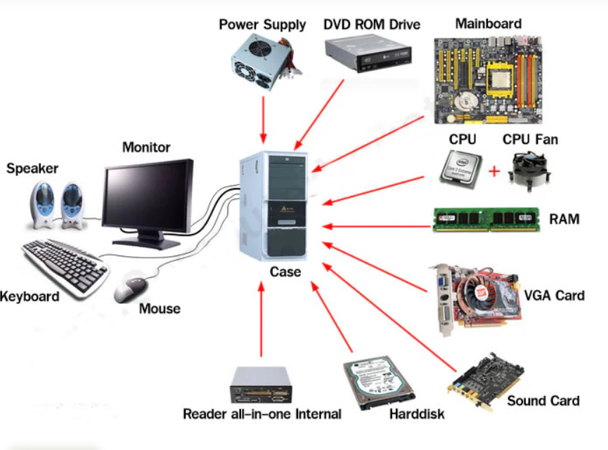 12. ฮาร์ดแวร์ (Hardware) คือ อุปกรณ์ชิ้นส่วน ของคอมพิวเตอร์ที่สามารถจับต้องได้ เช่น แป้นพิมพ์ จอภาพ แผงวงจรไฟฟ้า สายไฟ หน่วยประมวลผลกลาง (CPU Central Processing Unit) ฯลฯ