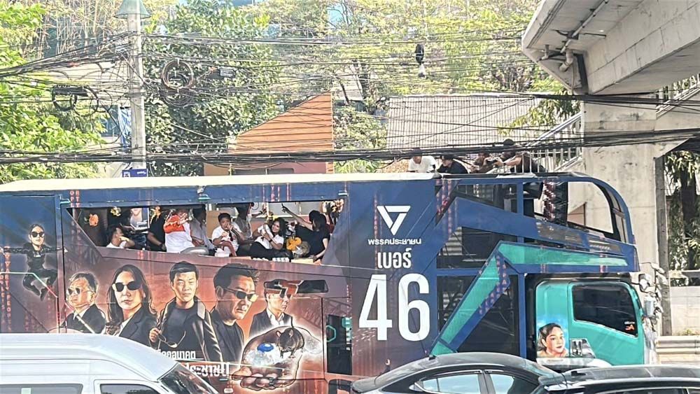 ขบวนหาเสียงพิธา ผ่านหน้าพรรคภูมิใจไทย แซว อยู่ภูมิใจไทย ก็เลือกประชาชนได้