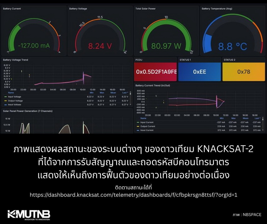 เมื่อวันที่ 22 กุมภาพันธ์ 2569 เวลา 01.02 น. สถานีภาคพื้นดินของสถาบันวิจัยดาราศาสตร์แห่งชาติ (องค์การมหาชน) หรือ NARIT สามารถรับสัญญาณดาวเทียม KNACKSAT-2 ของมหาวิทยาลัยเทคโนโลยีพระจอมเกล้าพระนครเหนือ (มจพ.) ได้เป็นครั้งแรก หลังจากดาวเทียมถูกปล่อยออกจากสถานีอวกาศนานาชาติเมื่อวันที่ 3 กุมภาพันธ์ 2569 เวลาประมาณ 15:55 น. (ตามเวลาประเทศไทย)
