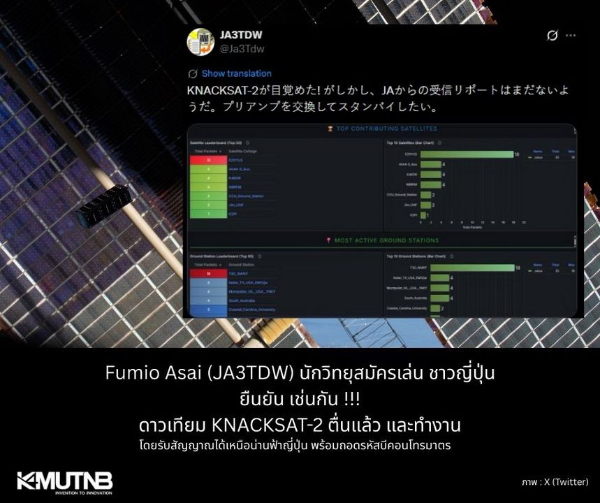 NARIT ยืนยัน ดาวเทียม ‘KNACKSAT-2’ มจพ. ส่งข้อมูลกลับมาพื้นโลกสำเร็จ