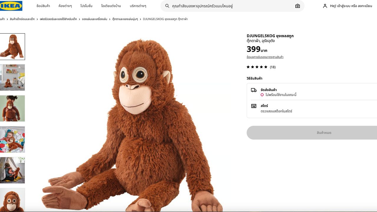 ตุ๊กตาอุรังอุตัง IKEA ขายเกลี้ยง จากกระแสไวรัลลูกลิงพันช์คุง ส่วนใน eBay ราคาพุ่งหลายเท่า