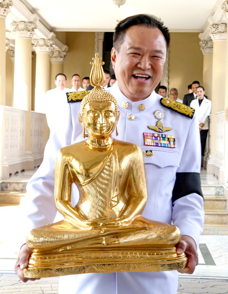 อมิตาพุทธ อนุทิน อุ้มพระบูชาขึ้นตึกไทยคู่ฟ้า อวยพรสื่อ เฮงๆเฮงๆ (คลิป)