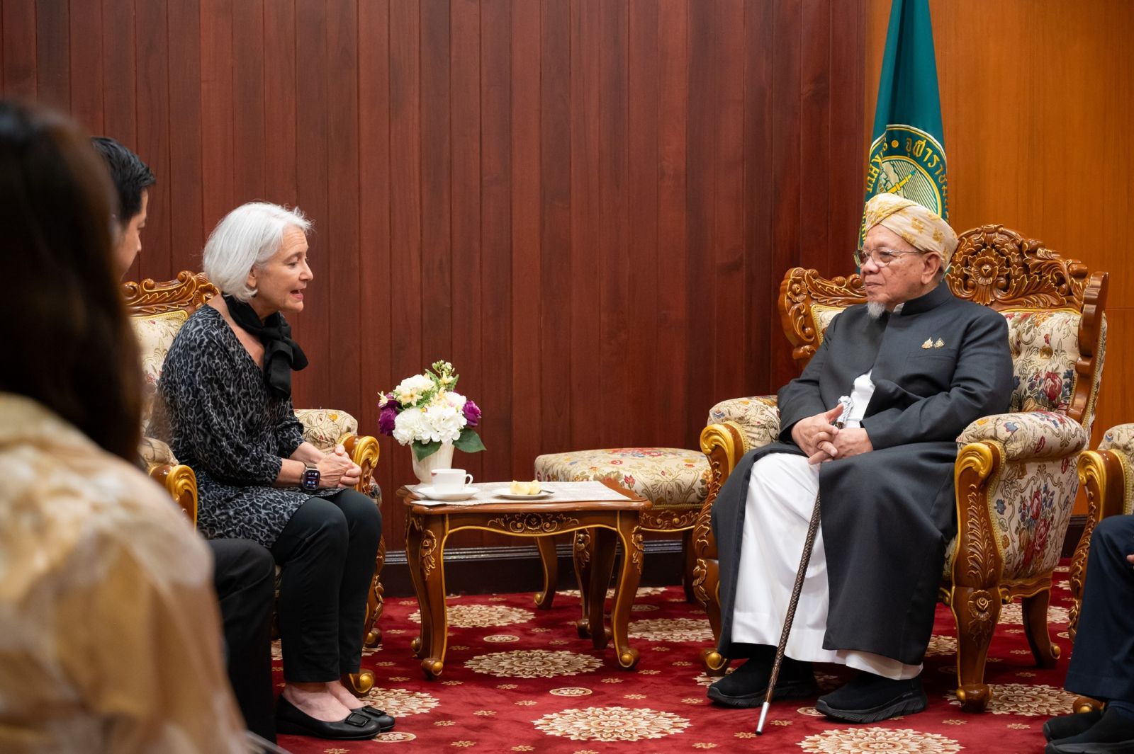 แทมมี่ ชาร์ป ผู้แทนข้าหลวงใหญ่ผู้ลี้ภัยแห่งสหประชาชาติ ประจำประเทศไทย และ อาจารย์อรุณ บุญชม จุฬาราชมนตรี