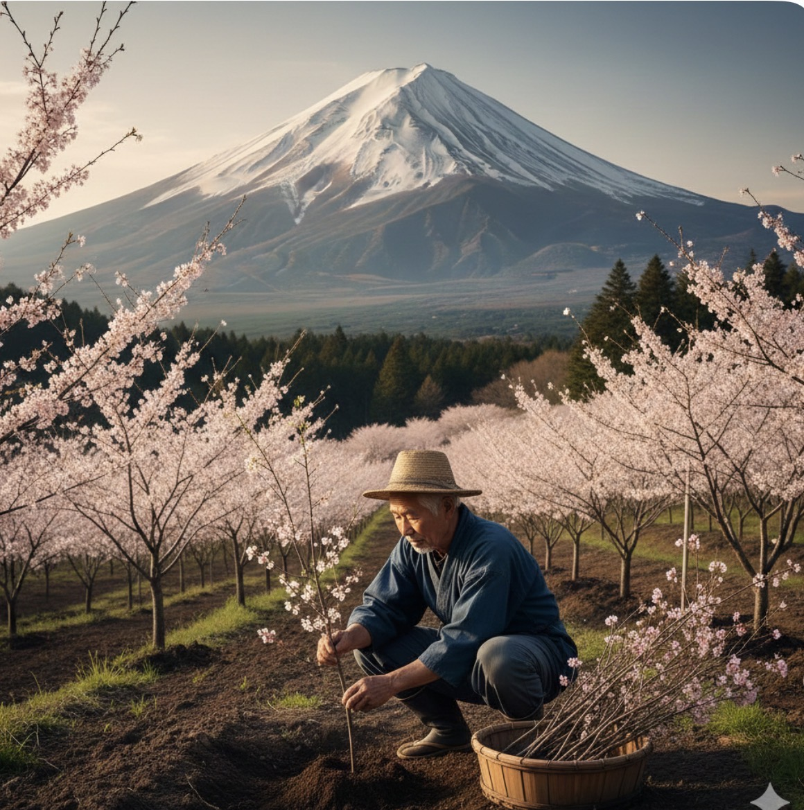 ทุกเช้า คุณตาจะแบกจอบกับถังน้ำ เดินขึ้นภูเขาช้าๆ ขุดดินแข็งๆ แล้วปลูกต้นซากุระทีละต้น แม้จะเหนื่อย แต่คุณตาก็ไม่ยอมแพ้ บางวันฝนตกหนัก ต้นกล้าเล็กๆ ก็ล้มลง บางวันแดดร้อนจัด ต้นไม้ก็แห้งตาย