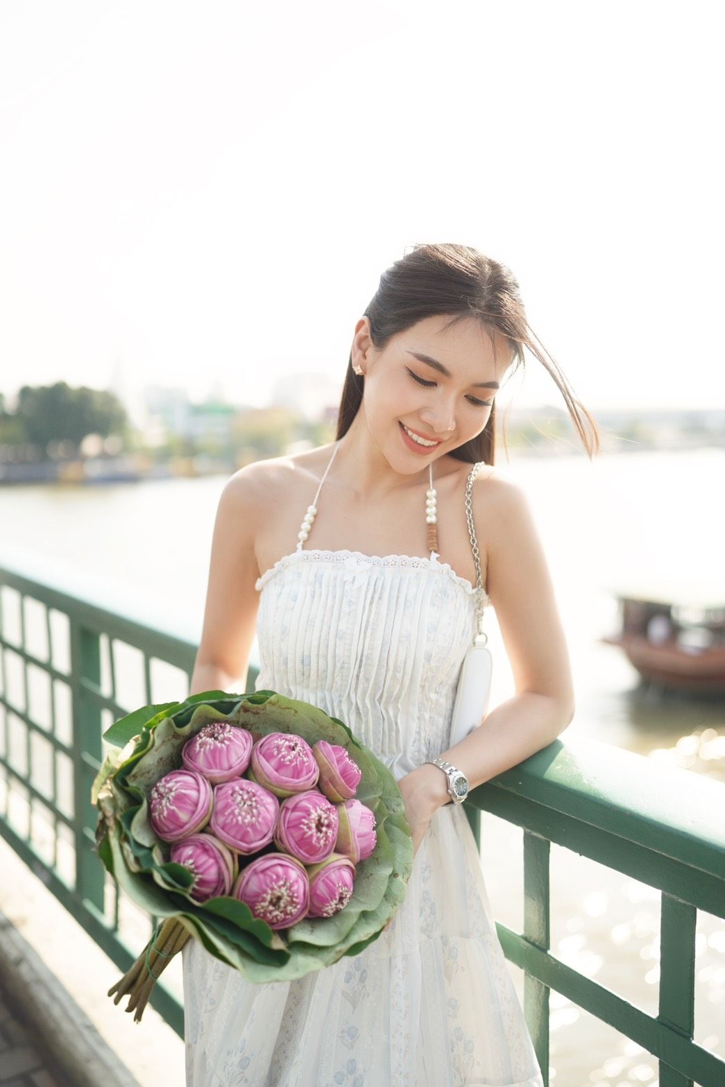 ‘ผู้กองแคท’ไม่พลาดกระแสดอกบัวฟีเวอร์ เช็คอินสะพานพุทธสุดชิค