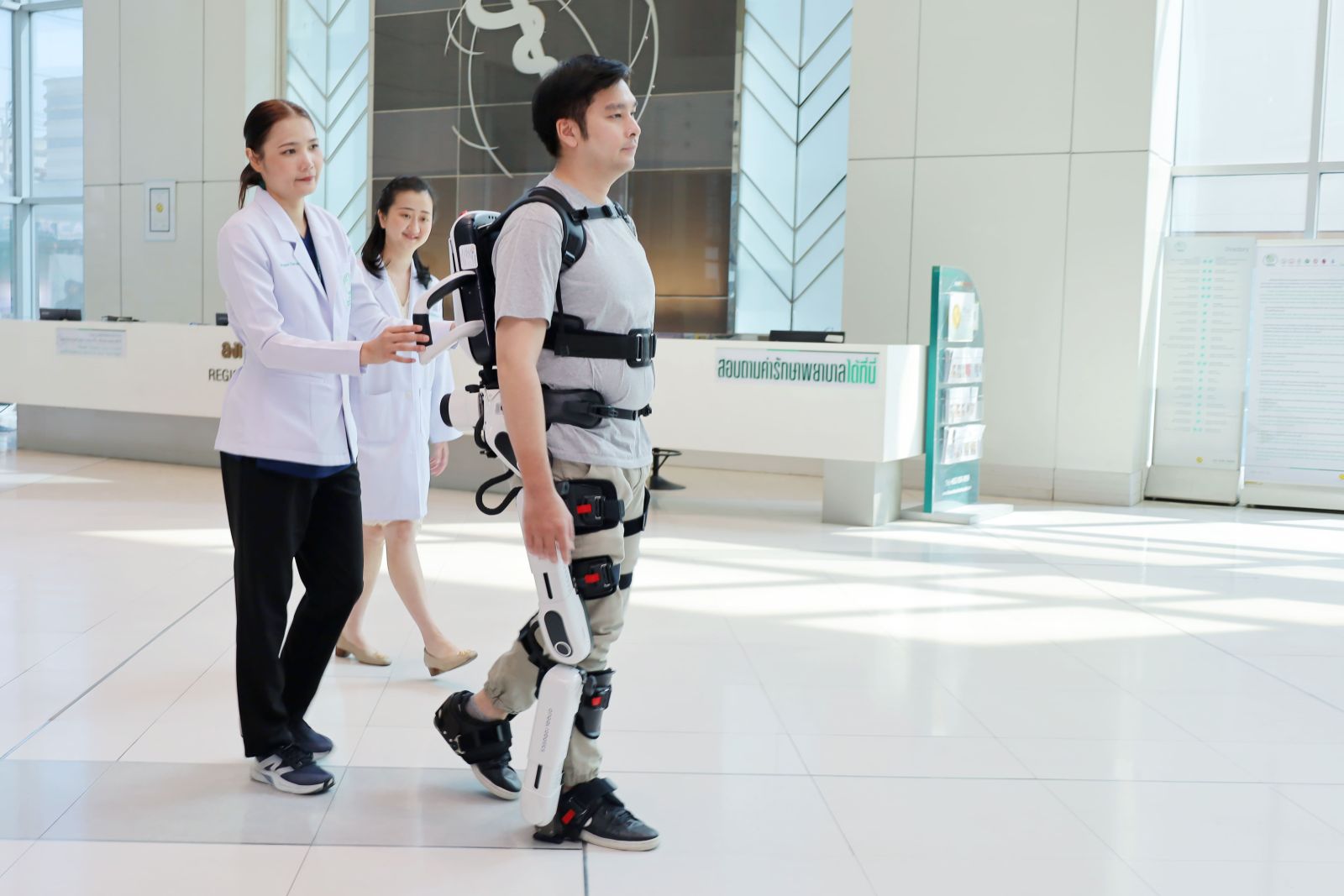 กันตพร หาญพาณิชย์ รองผู้อำนวยการโรงพยาบาลฝ่ายการตลาดภายในประเทศ กล่าวเสริมว่า “Angel Robot” เป็นหุ่นยนต์ฟื้นฟูการเดิน ที่ออกแบบให้ช่วยผู้ป่วยกลับมาเดินได้ใกล้เคียงธรรมชาติ เหมาะสำหรับผู้ป่วยโรคหลอดเลือดสมอง (Stroke) ผู้ที่มีความผิดปกติของระบบสมองและประสาท ผู้ประสบอุบัติเหตุ รวมถึงผู้ที่มีกล้ามเนื้อขาอ่อนแรง โดยโรงพยาบาลมุ่งมั่นต่อยอดเทคโนโลยี เพื่อเพิ่มประสิทธิภาพและอัตราความสำเร็จในการฟื้นฟูผู้ป่วยของโรงพยาบาล เพื่อคืนคุณภาพชีวิตที่ดีในระยะยาว